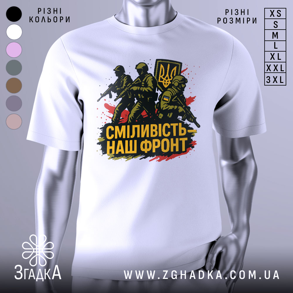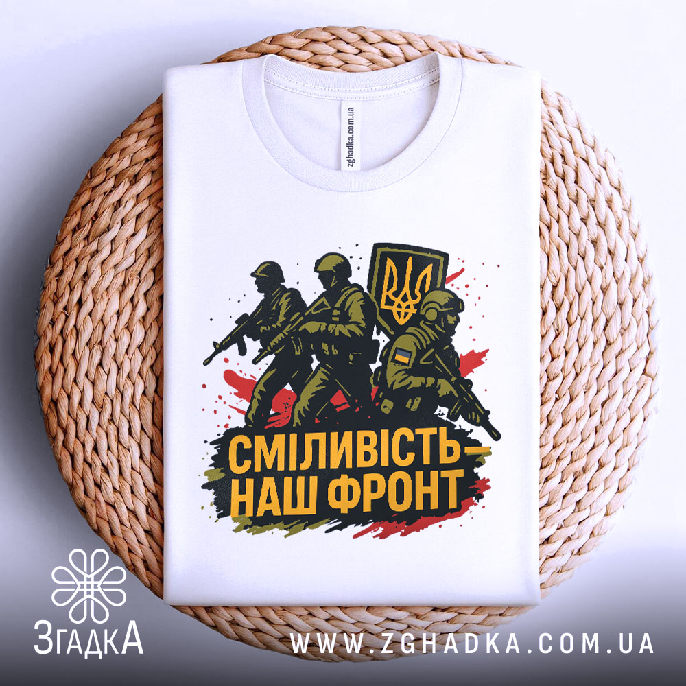 Футболка ‘Сміливість наш фронт’ – це не просто одяг, а символ підтримки та єдності. Носіть її з гордістю та надихайте інших!