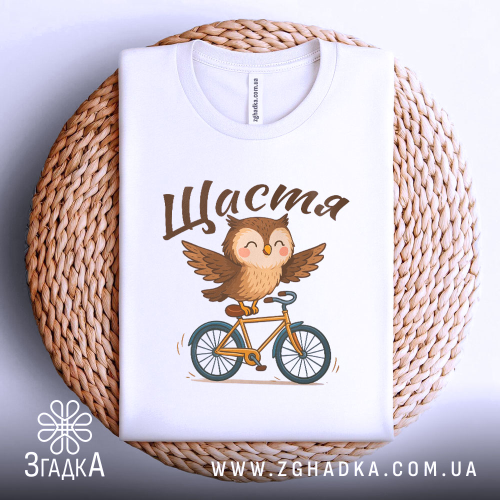 Ця футболка виготовлена з високоякісних матеріалів, що забезпечують комфорт та стиль. Принт з совою не лише прикрашає, а й несе в собі глибокий сенс – щастя та радість у кожному дні.
