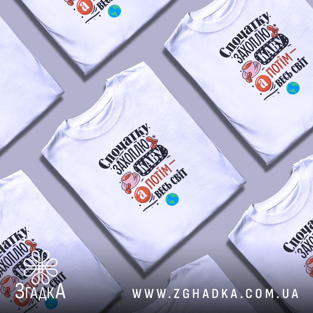 Футболка з яскравим принтом для справжніх поціновувачів кави. Комфорт та стиль в одному флаконі.
