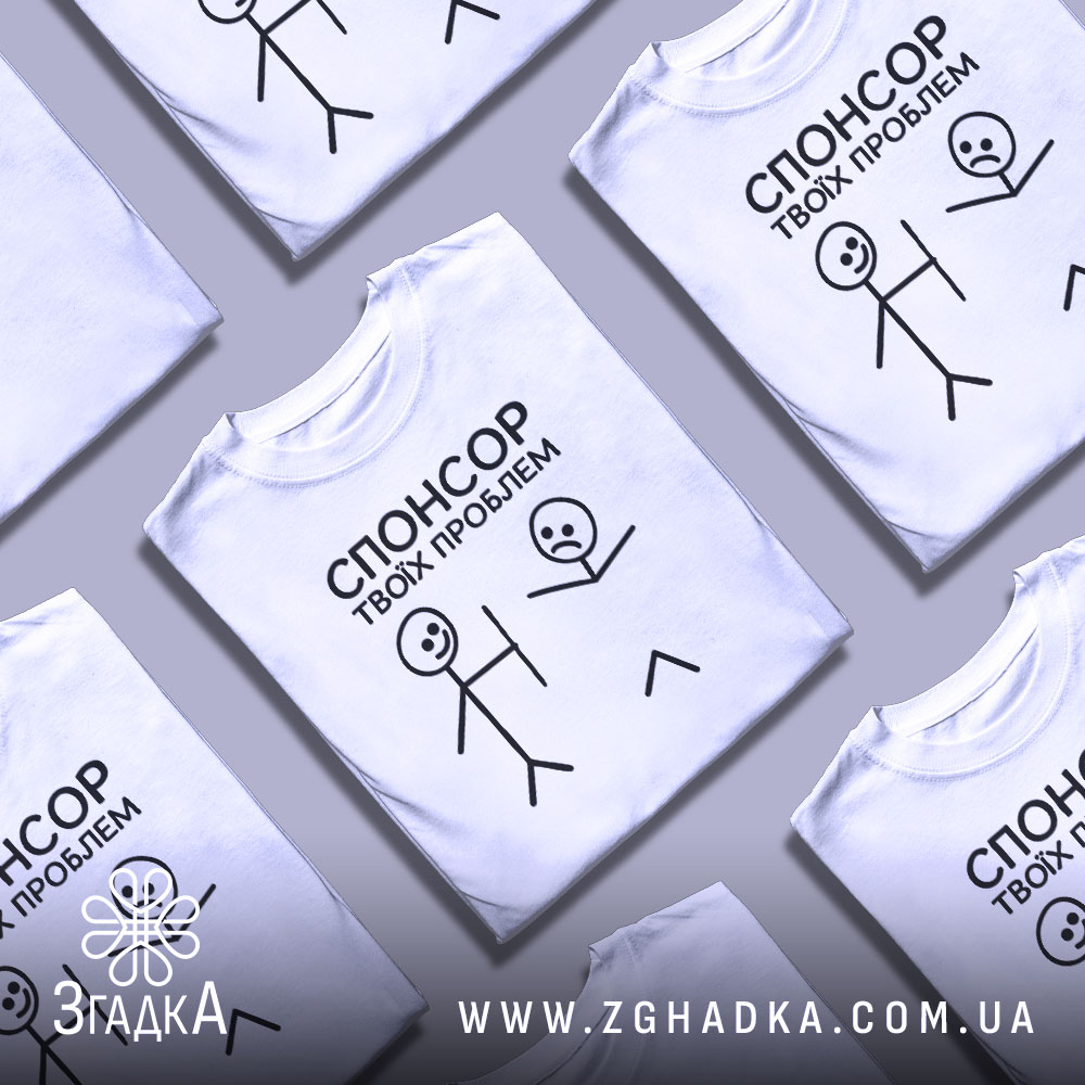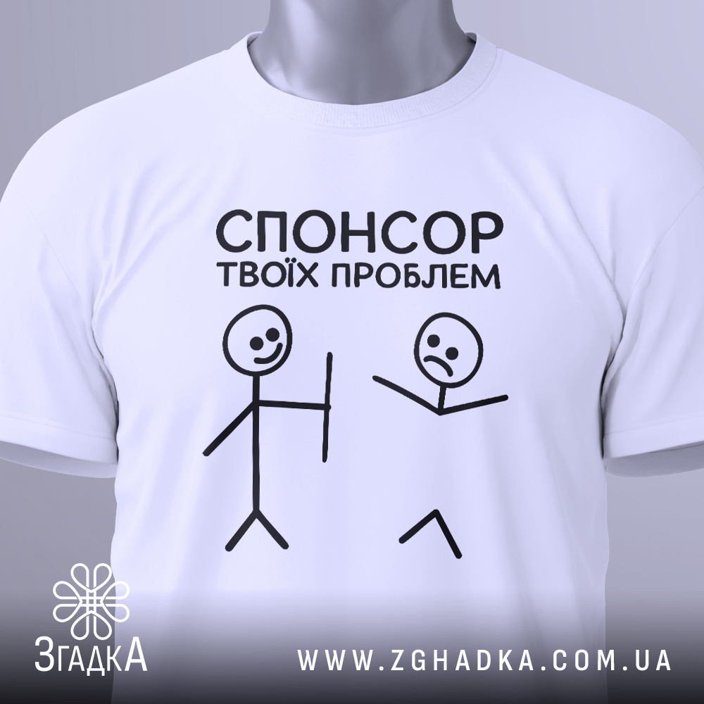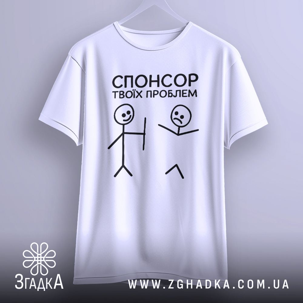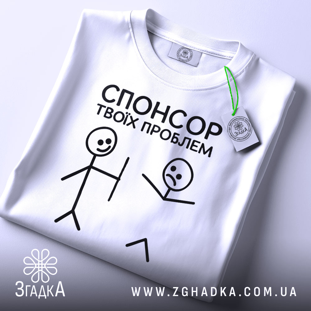 Футболка спонсор проблем – це стильний та комфортний одяг для будь-якого випадку. Вона підходить для молоді та стане чудовим подарунком.