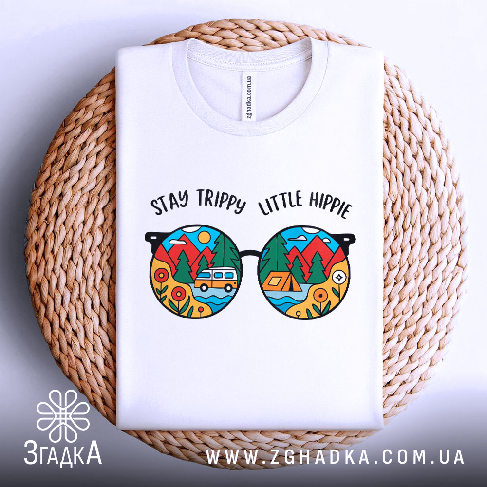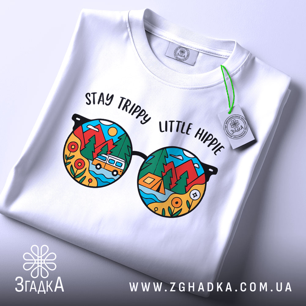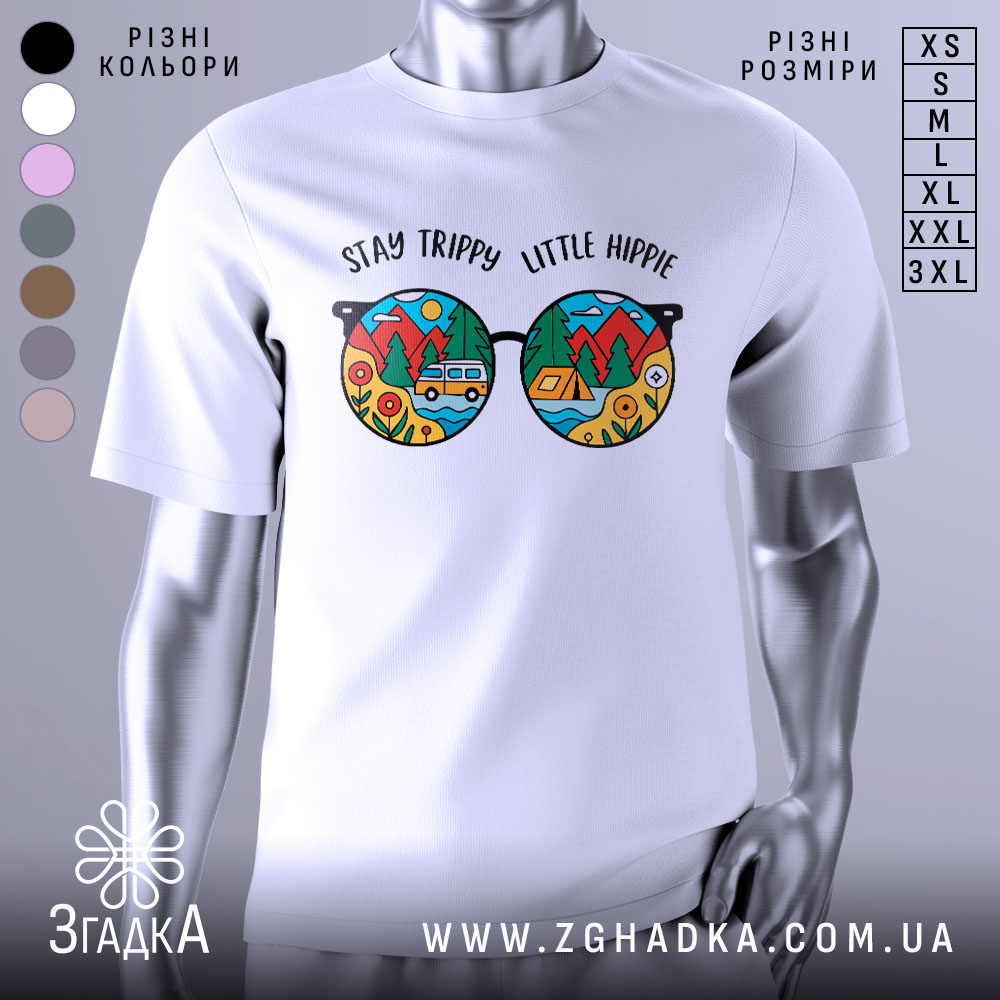 Футболка стиль хіпі виготовлена з м’якого матеріалу, що забезпечує комфорт протягом усього дня. Принт на футболці символізує свободу, творчість та позитивні емоції, роблячи її ідеальним вибором для творчих особистостей.