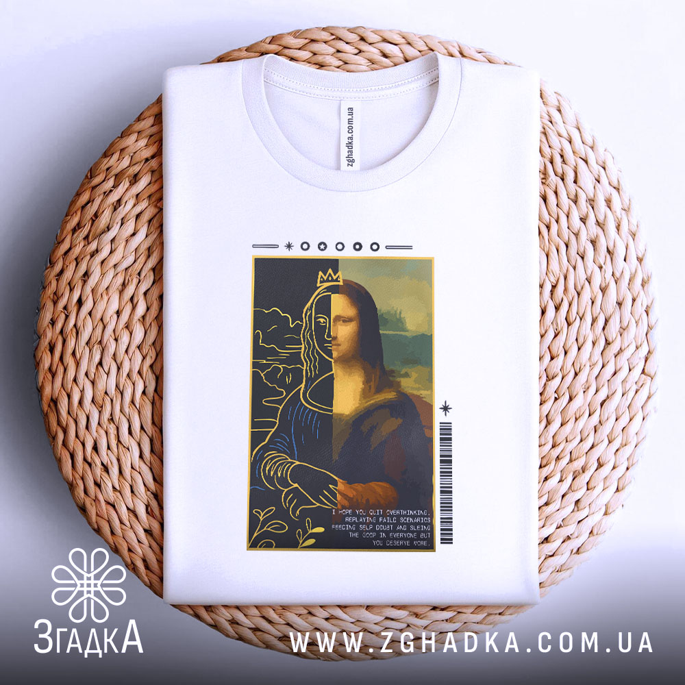 На принті зображена сучасна інтерпретація класичного мистецтва, що викликає емоції та захоплення. Ця футболка стане яскравим акцентом у вашому гардеробі, підкреслюючи вашу індивідуальність.