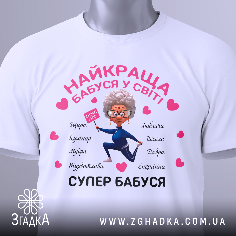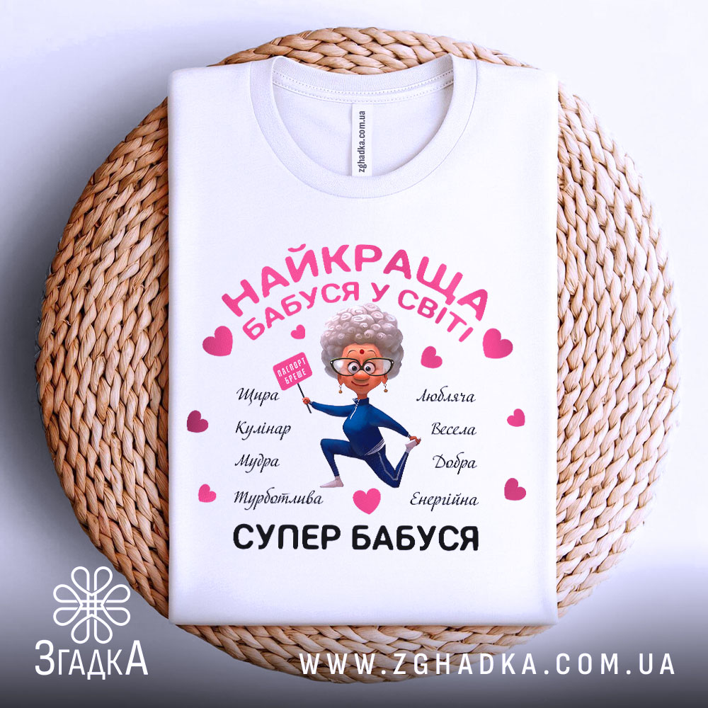 Футболка супер бабуся – це стильний, комфортний і практичний вибір для кожного, хто хоче підкреслити свою індивідуальність та любов до близьких.