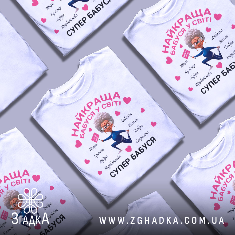 - Чи підходить футболка для подарунка? Так, це ідеальний подарунок для бабусі!
