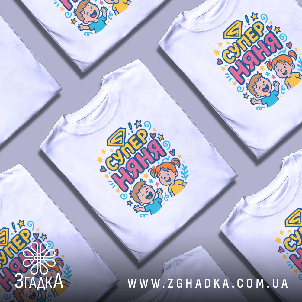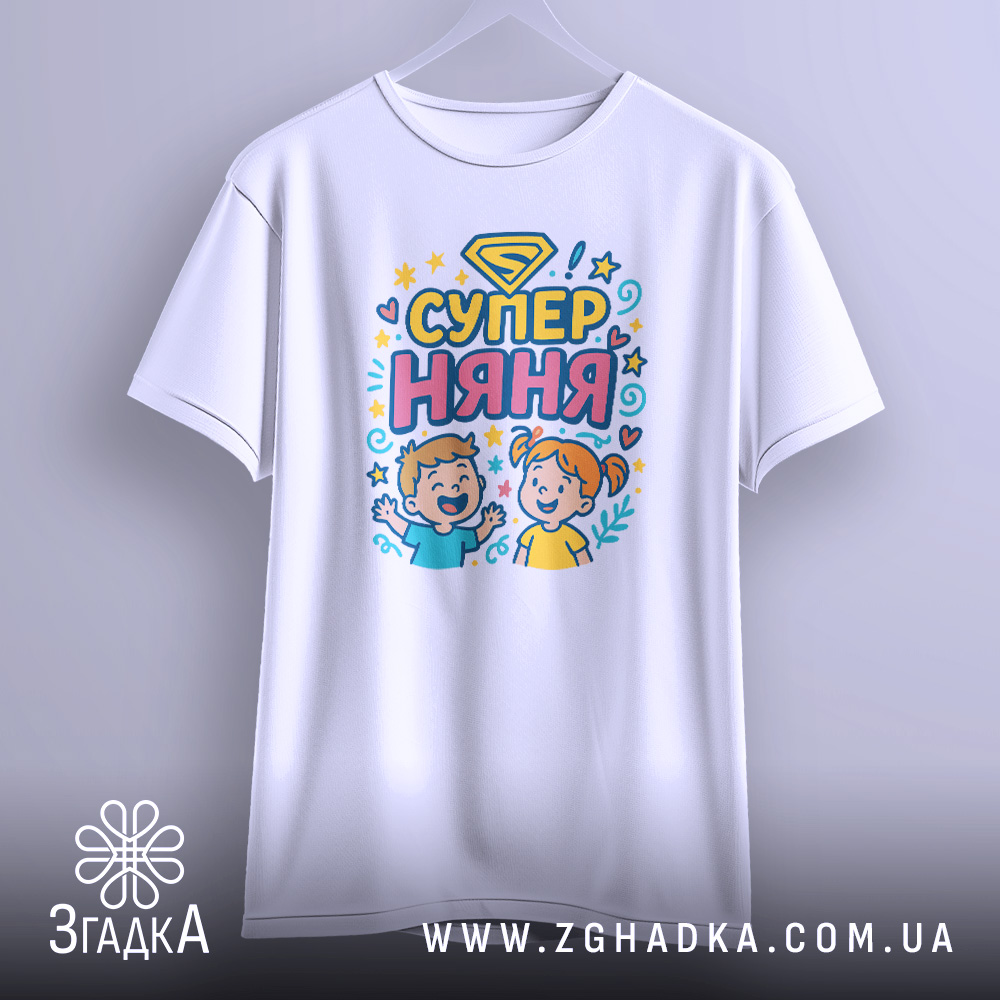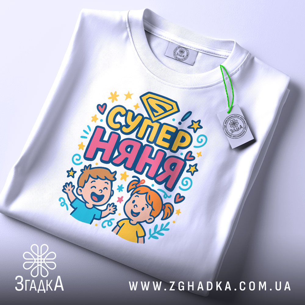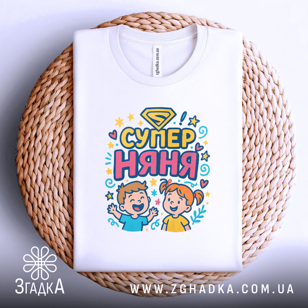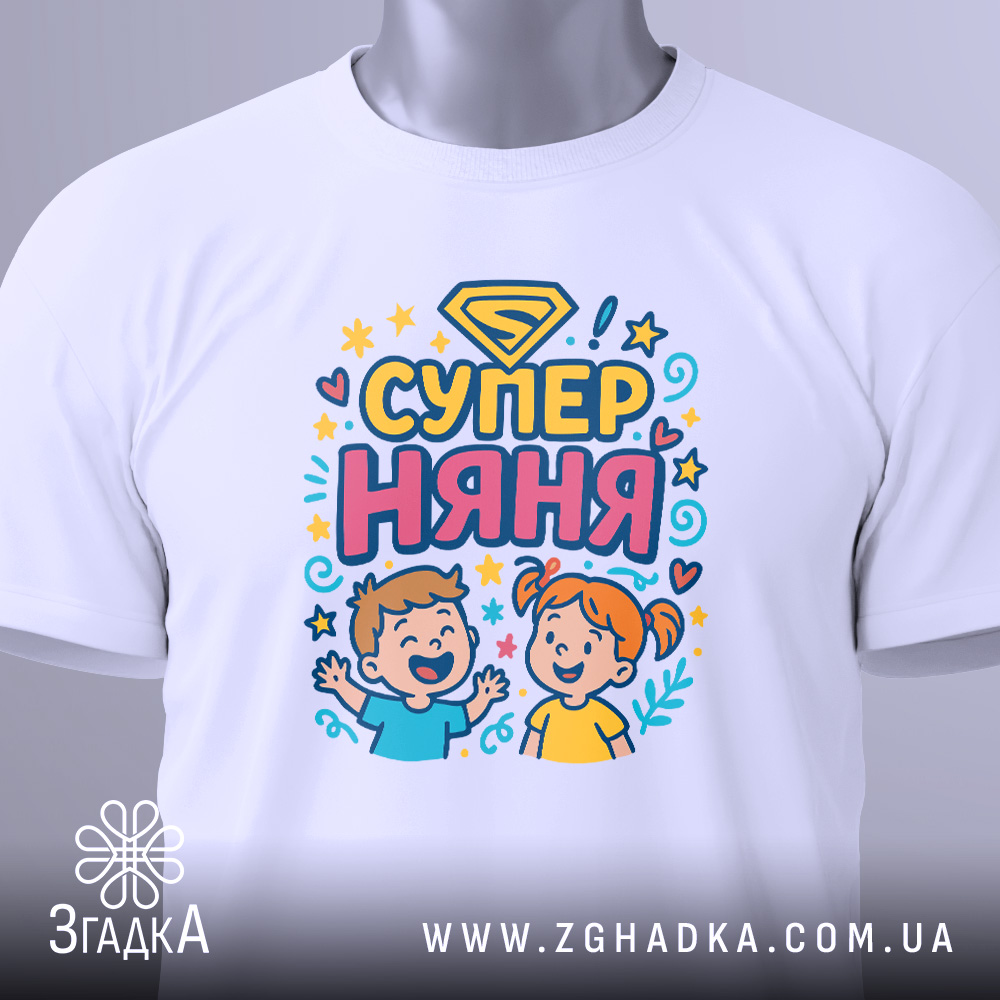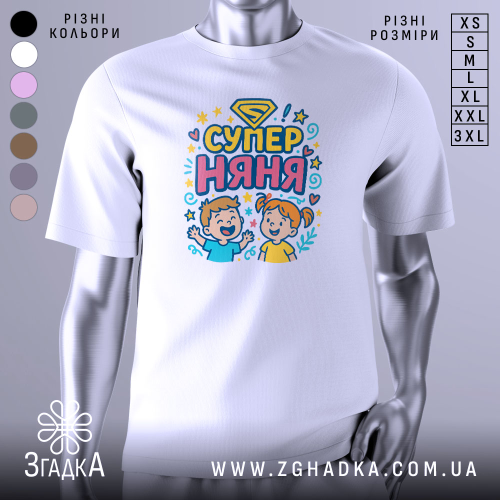 Футболка супер няня підходить для батьків, бабусь, дідусів, а також стане чудовим подарунком на свято. Вона ідеальна для повсякденного носіння, святкових заходів або просто для підняття настрою.