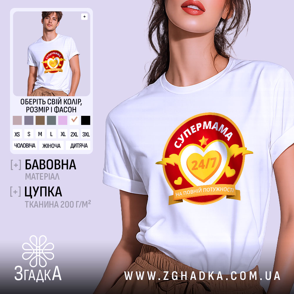 Футболка супермама – це не просто одяг, а вираження вашої ідентичності. Принт символізує материнську силу та безмежну любов, що робить її ідеальним вибором для кожної мами.