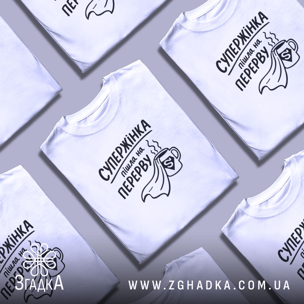Футболка супержінка на перерві — ідеальна для кавових пауз