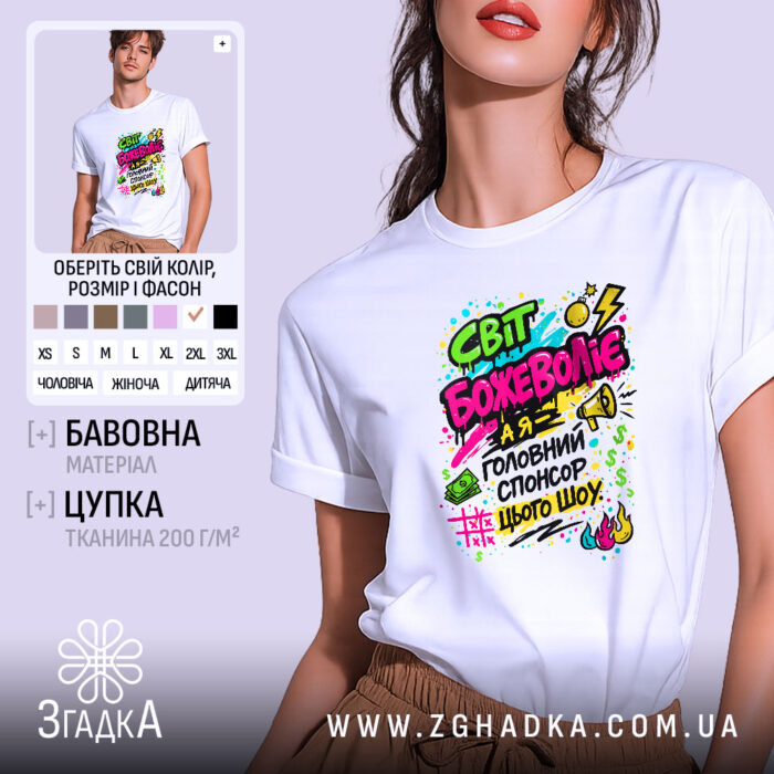 Футболка світ божеволіє — це яскравий акцент у вашому гардеробі. Вона поєднує стиль, комфорт і унікальність.