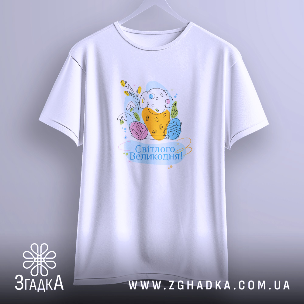 Ця футболка з оригінальним принтом стане чудовим доповненням до вашого гардеробу. Вона підходить для святкування Великодня та щоденного носіння.