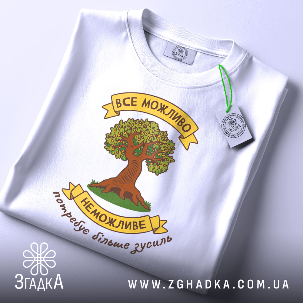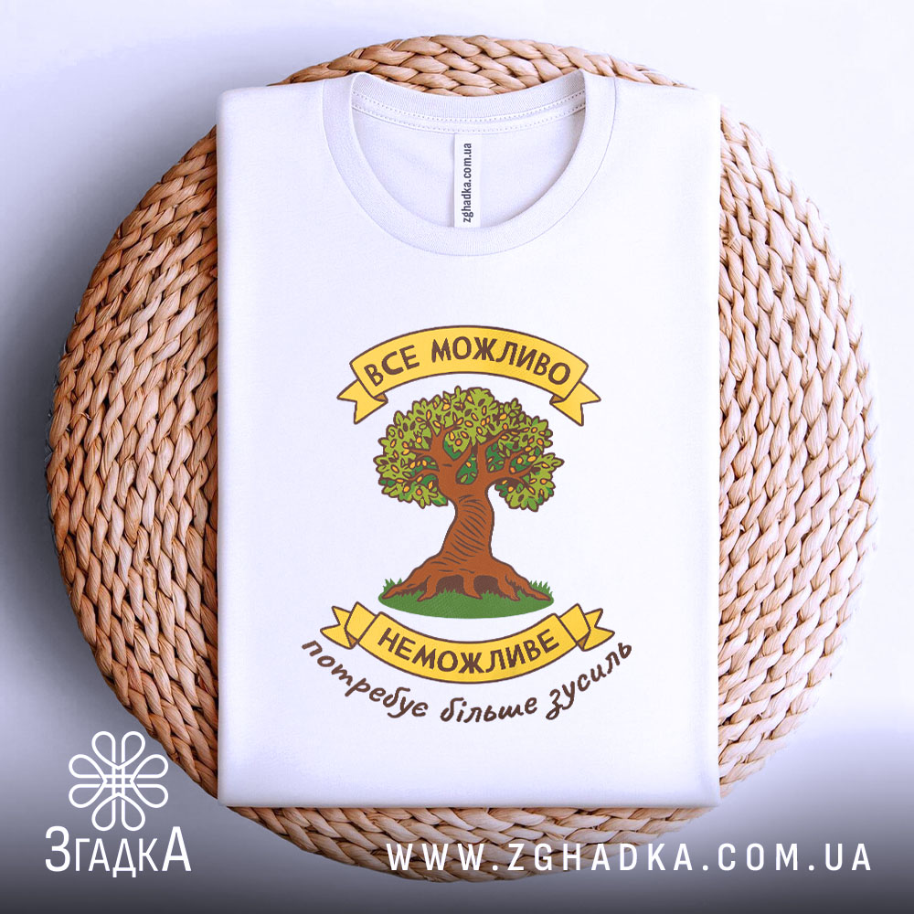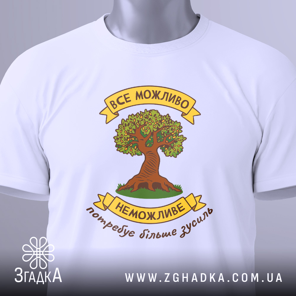 Ця футболка виготовлена з якісних матеріалів і має унікальний принт, що символізує безмежні можливості. Вона стане чудовим доповненням до вашого гардеробу, адже кожен раз, коли ви її одягнете, будете відчувати натхнення до нових досягнень.