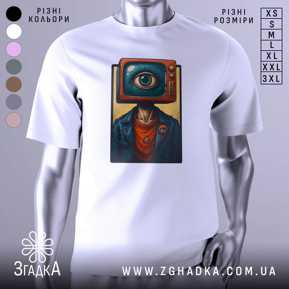Футболка телевізор око — це не просто одяг, а вираження вашої індивідуальності. Принт символізує зв’язок між технологіями та мистецтвом, що робить її ідеальним вибором для креативних особистостей.