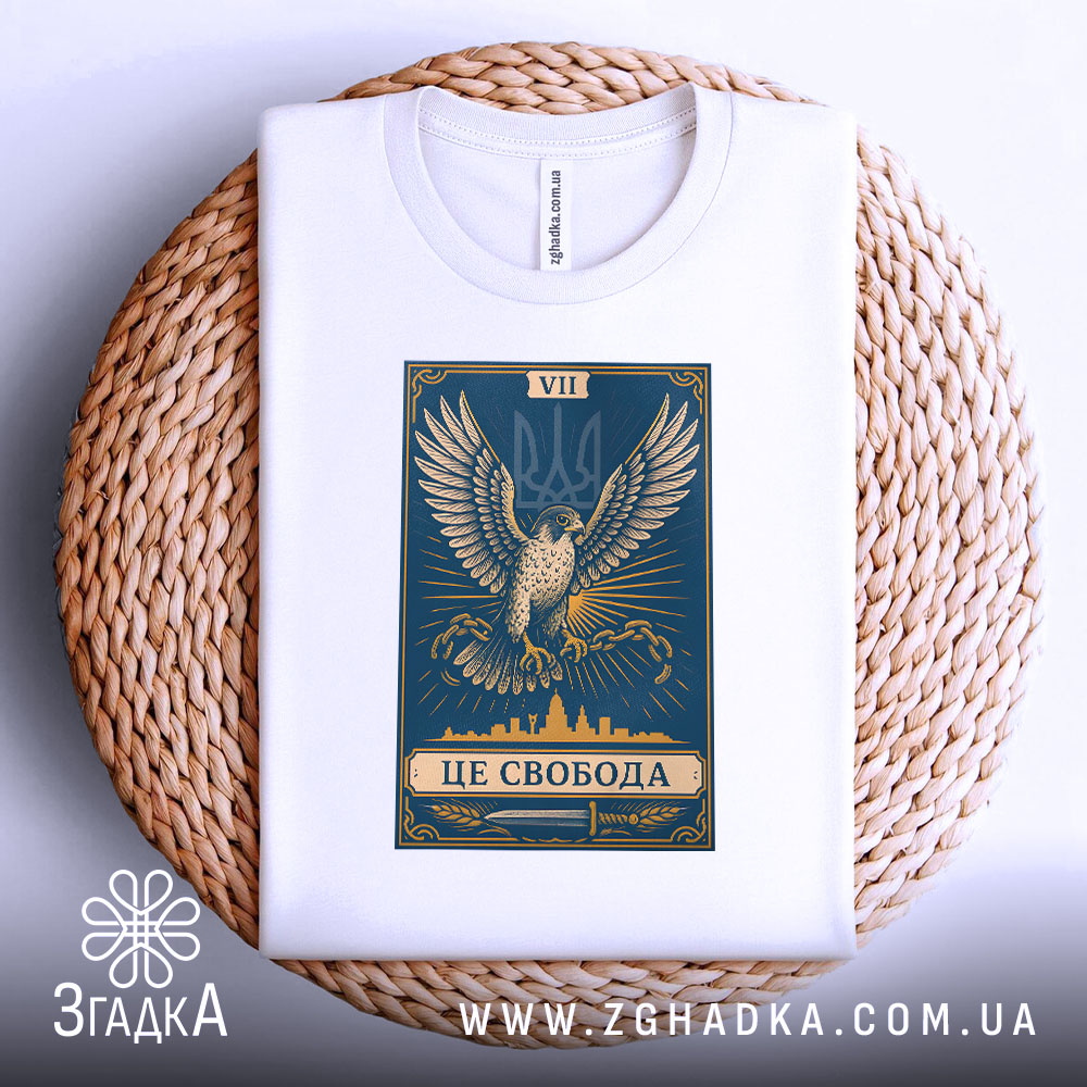 Ця футболка з унікальним принтом символізує свободу. Виготовлена з якісних матеріалів, вона забезпечує комфорт і стиль.