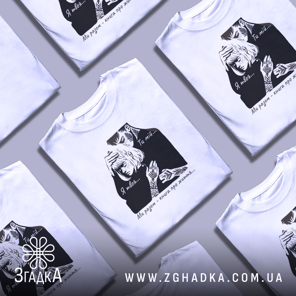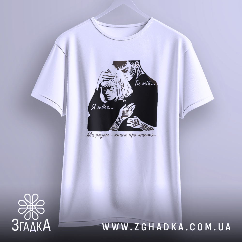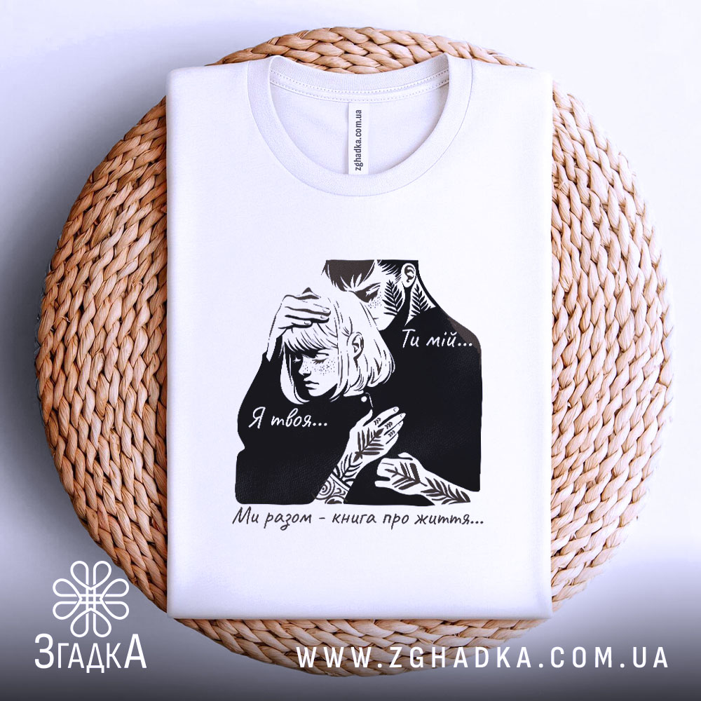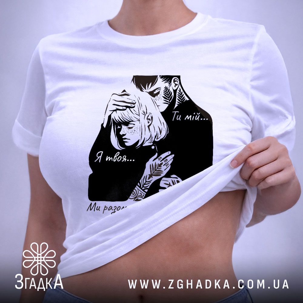 Ця футболка виготовлена з високоякісних матеріалів, що забезпечують комфорт і стиль. Принт 'ти мій я твоя' говорить про глибокі почуття, які ви хочете висловити. Вона стане ідеальним вибором для романтичних моментів.