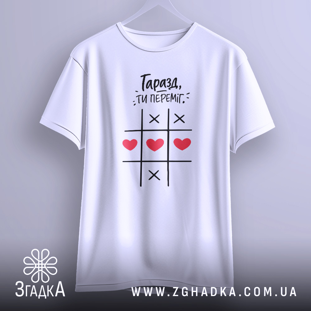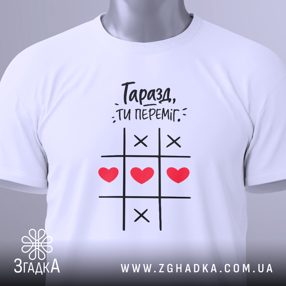 Ця футболка виготовлена з високоякісних матеріалів та має унікальний принт, що символізує вашу перемогу. Вона підходить для будь-якого випадку, підкреслюючи вашу індивідуальність та стиль.