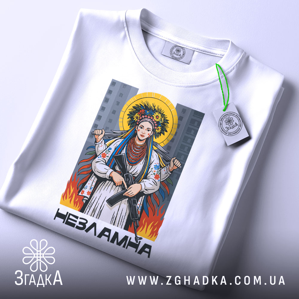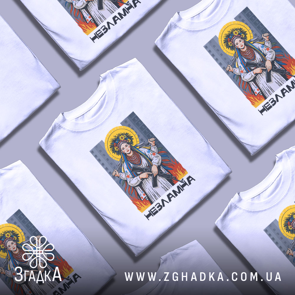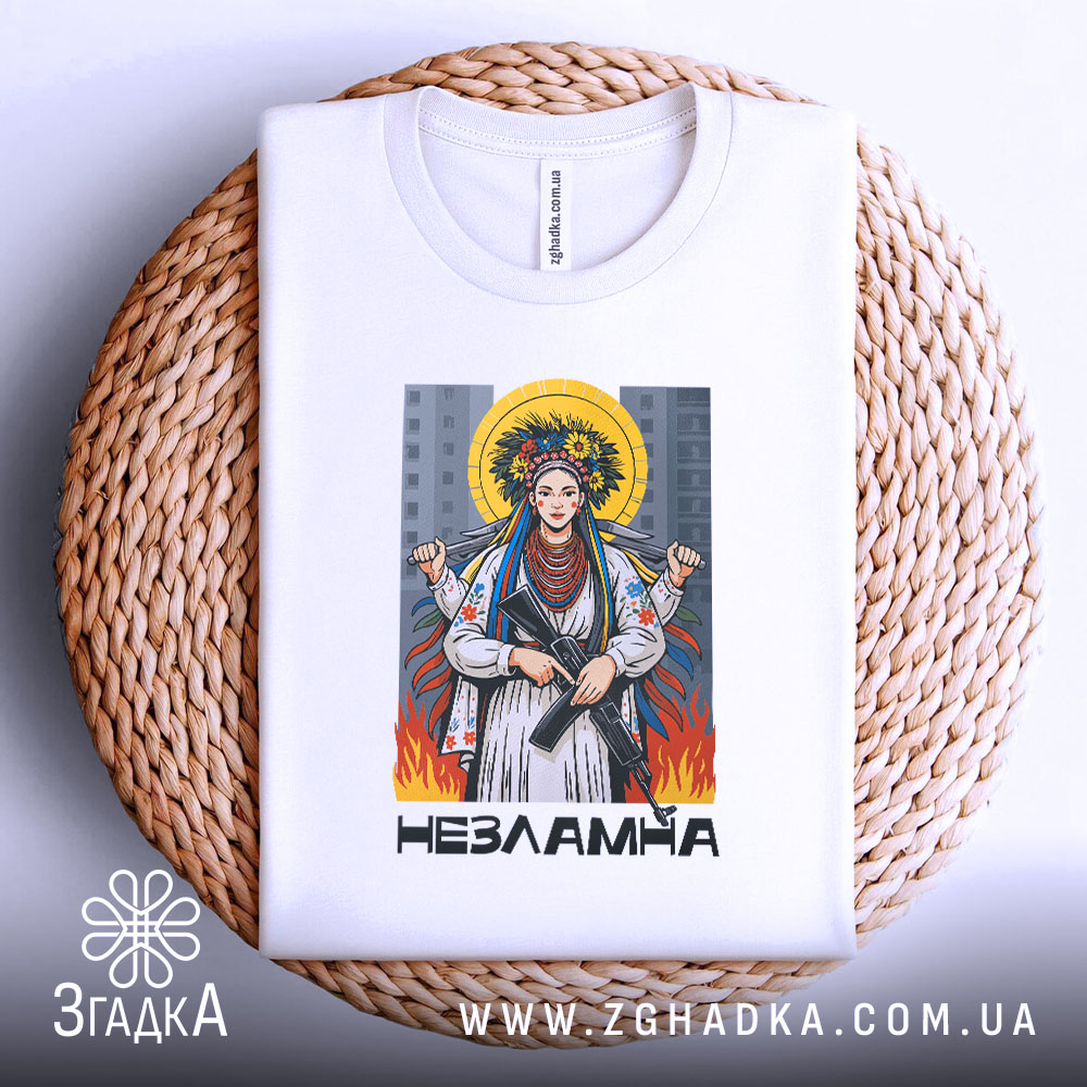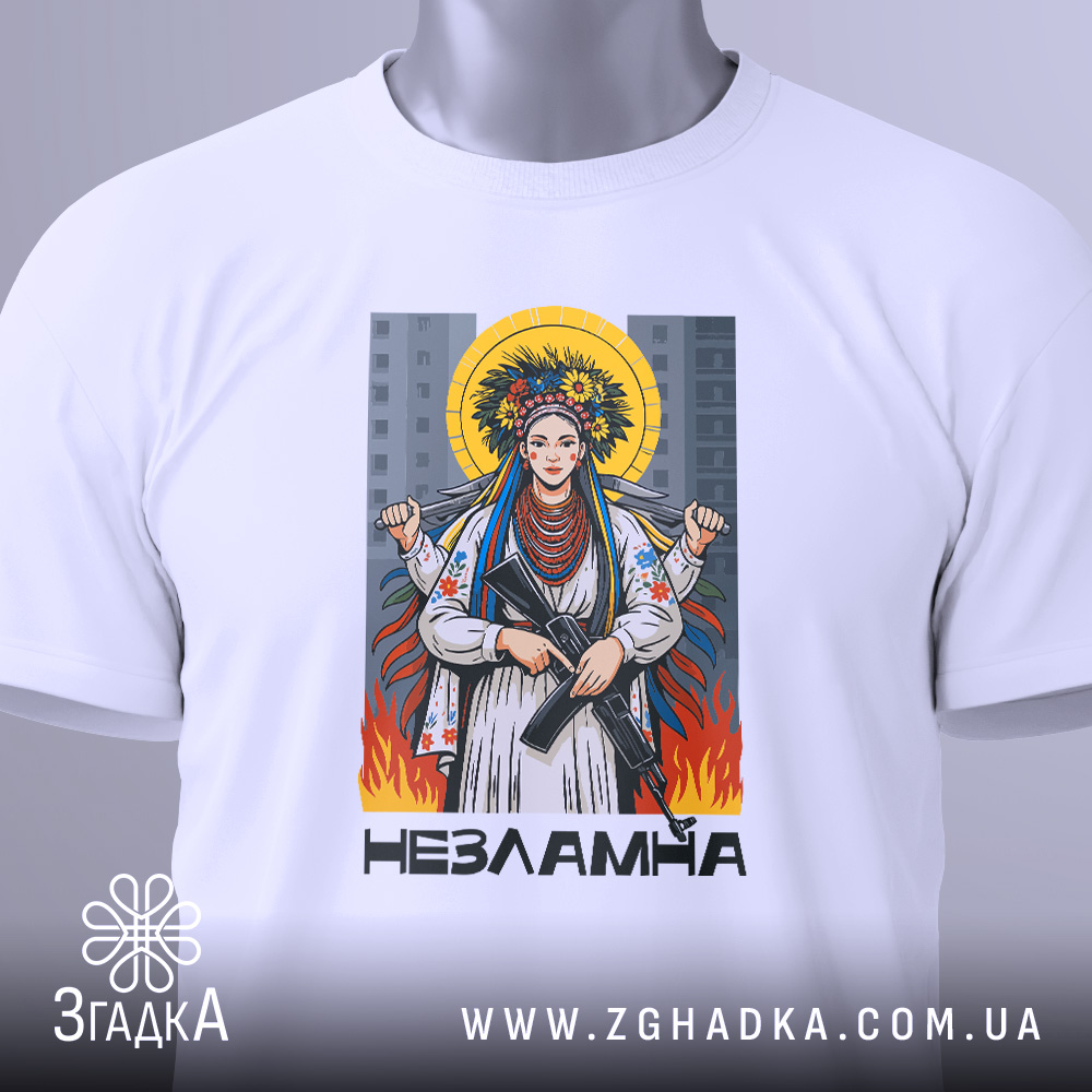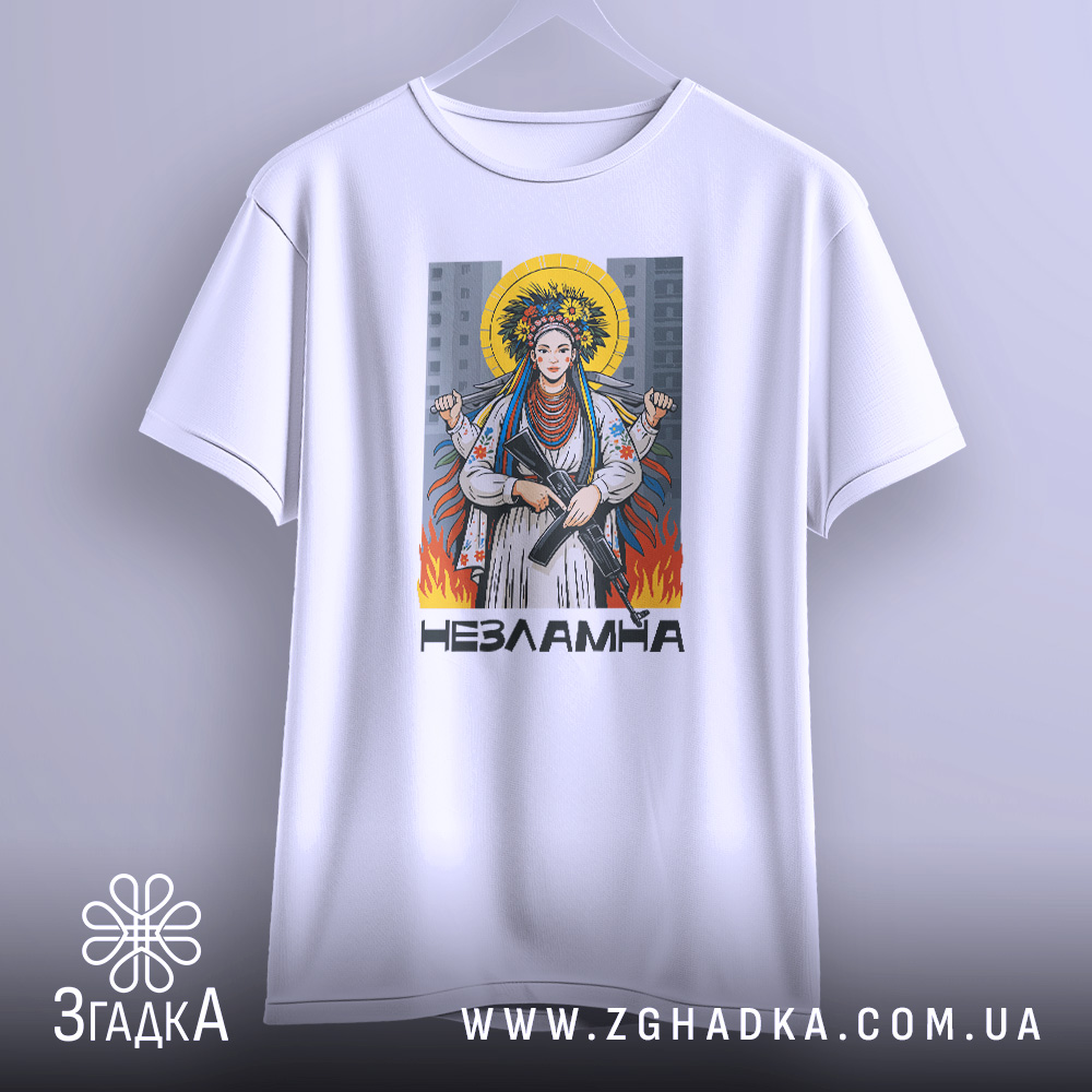Ця футболка виготовлена з якісних матеріалів та має унікальний принт, який символізує незламність українського духу. Вона стане чудовим доповненням до вашого гардеробу, підкреслюючи вашу патріотичність та стиль.