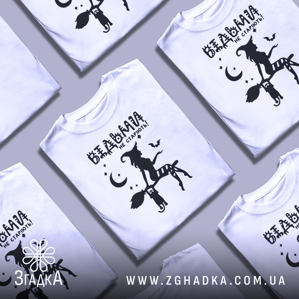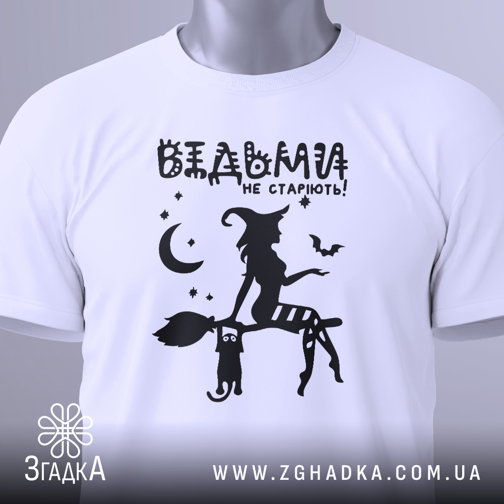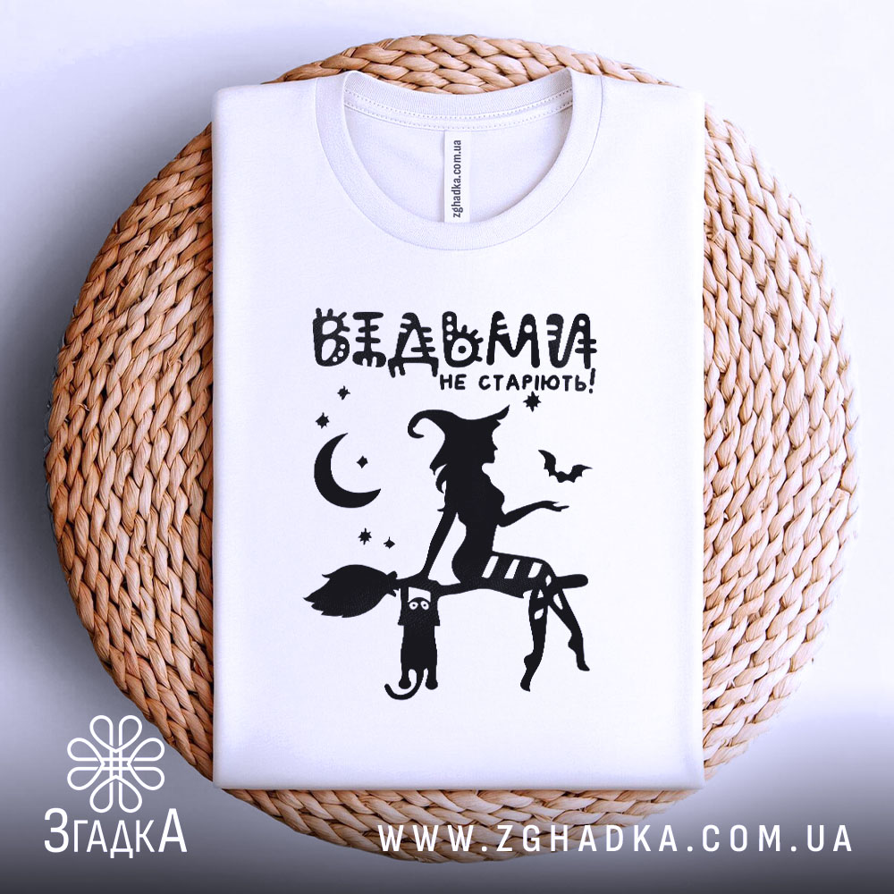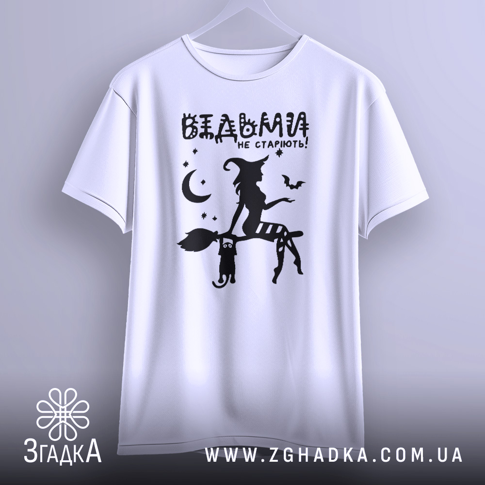 Футболка відьми не старіють – це не просто одяг, а стильний вираз вашої індивідуальності. Принт відображає вічну молодість і силу, що надихає на нові звершення. Вона стане чудовим доповненням до вашого гардеробу.