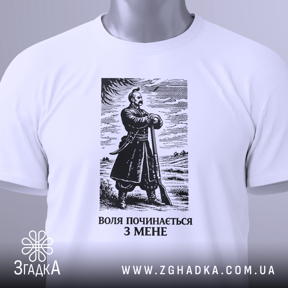 Ця футболка виготовлена з урахуванням сучасних трендів і зручності. Принт не лише стильний, а й має глибоке значення: воля починається з кожного з нас. Вона стане вашим улюбленим елементом гардеробу.