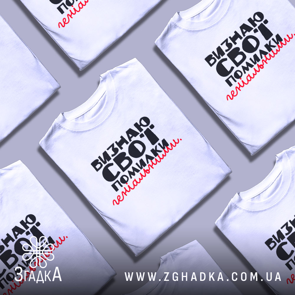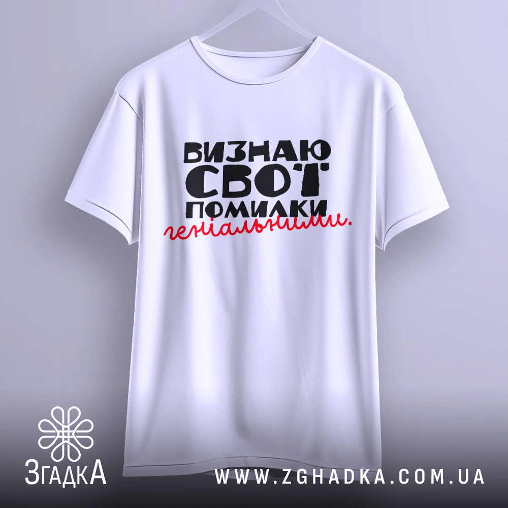 Стильна футболка з принтом ‘Визнаю свої помилки’ стане чудовим доповненням до вашого гардеробу. Вона підходить для будь-якої нагоди.
