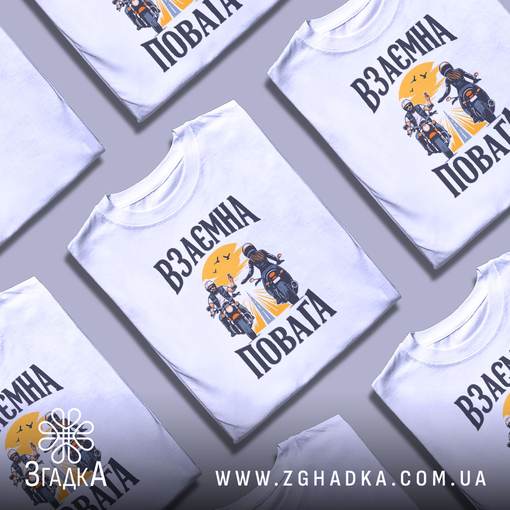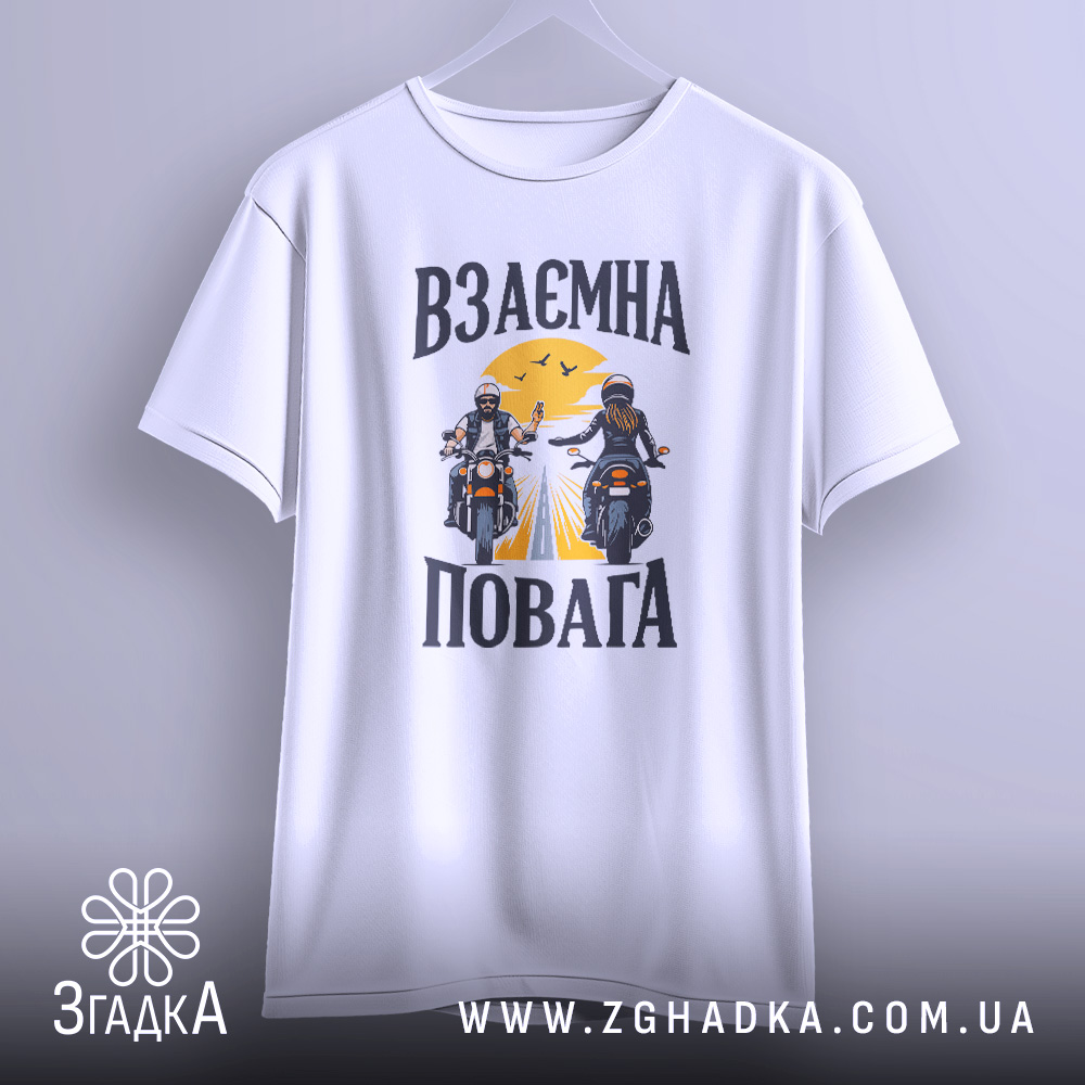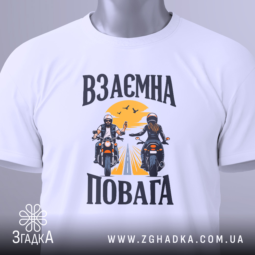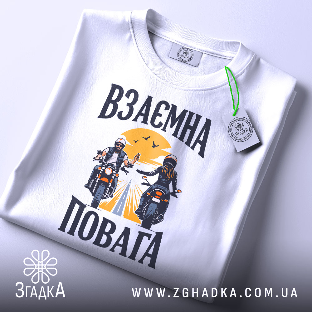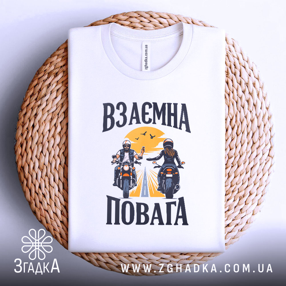 Футболка з принтом взаємної поваги для байкерів. Ідеальний вибір для комфорту та стилю.