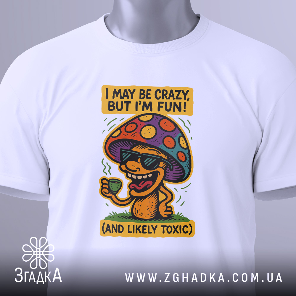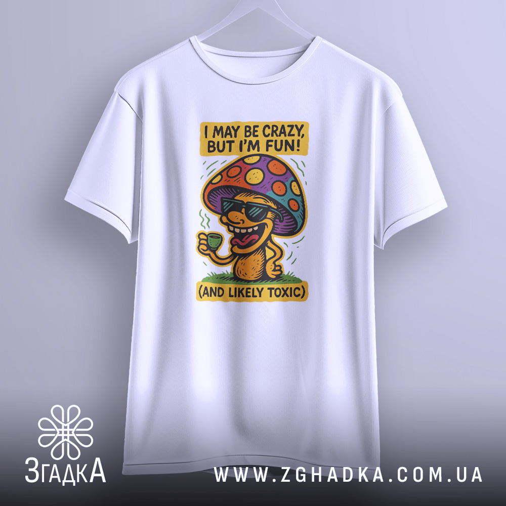 На принті зображено яскравий гриб, який додає кумедності та оригінальності. Ця футболка стане чудовим доповненням до вашого гардеробу. Не пропустіть можливість виділитися!