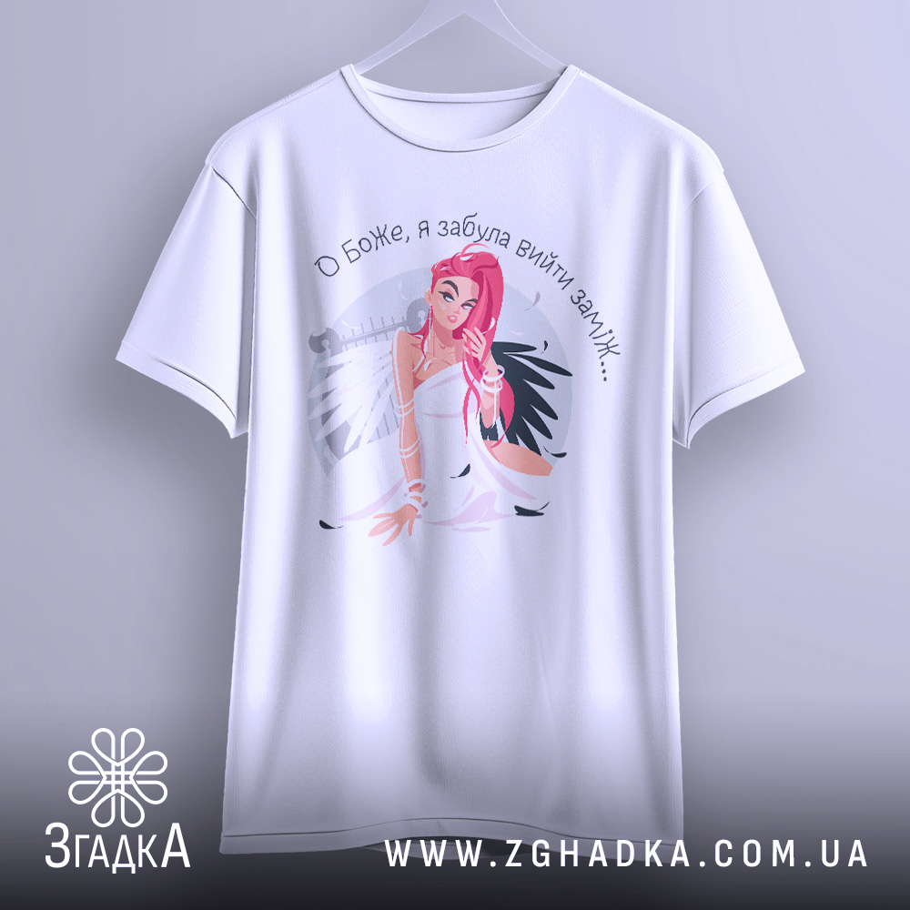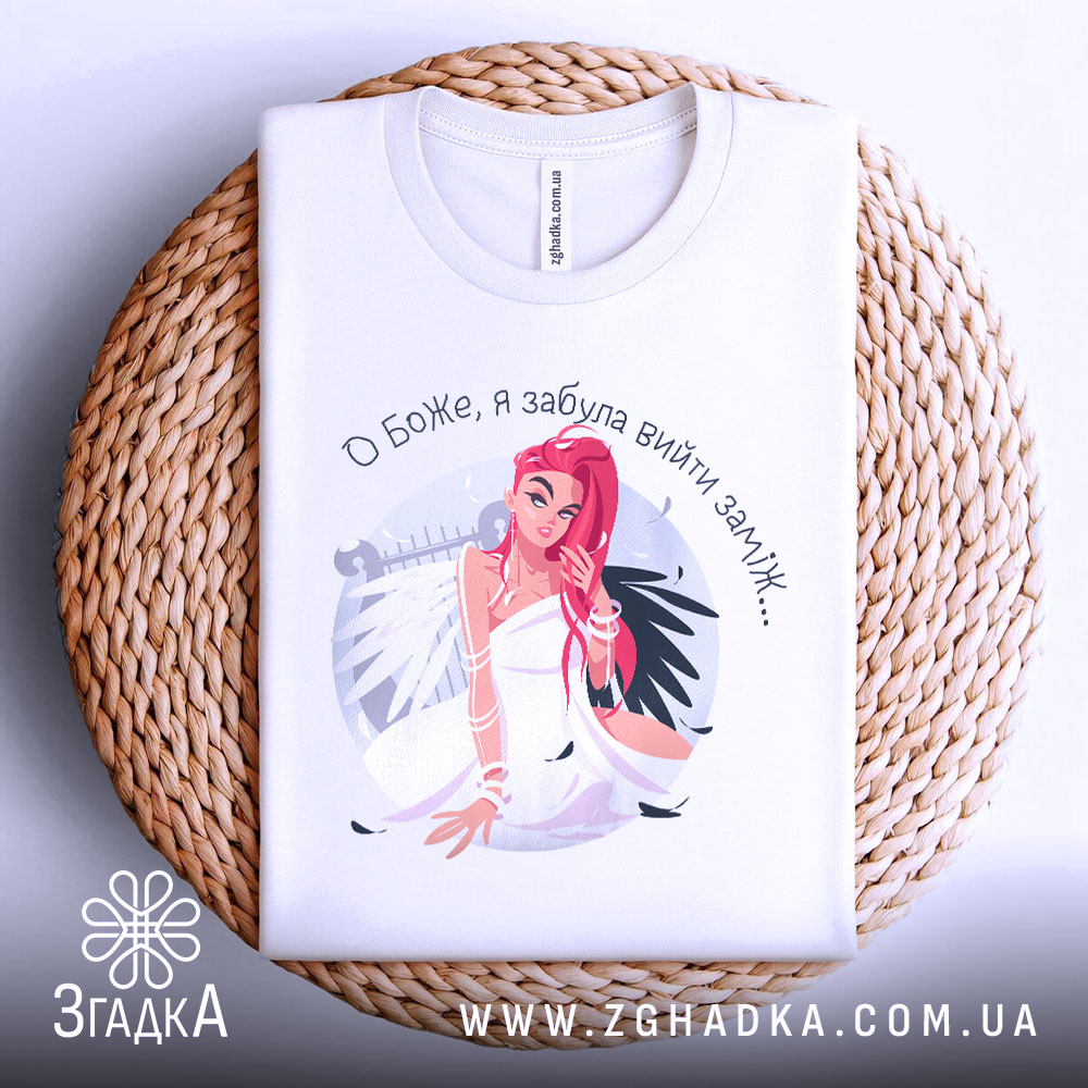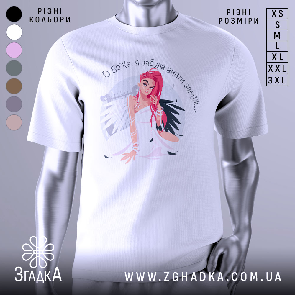 Футболка з кумедним принтом ‘Забула вийти заміж’. Ідеальний вибір для тих, хто цінує комфорт та стиль.