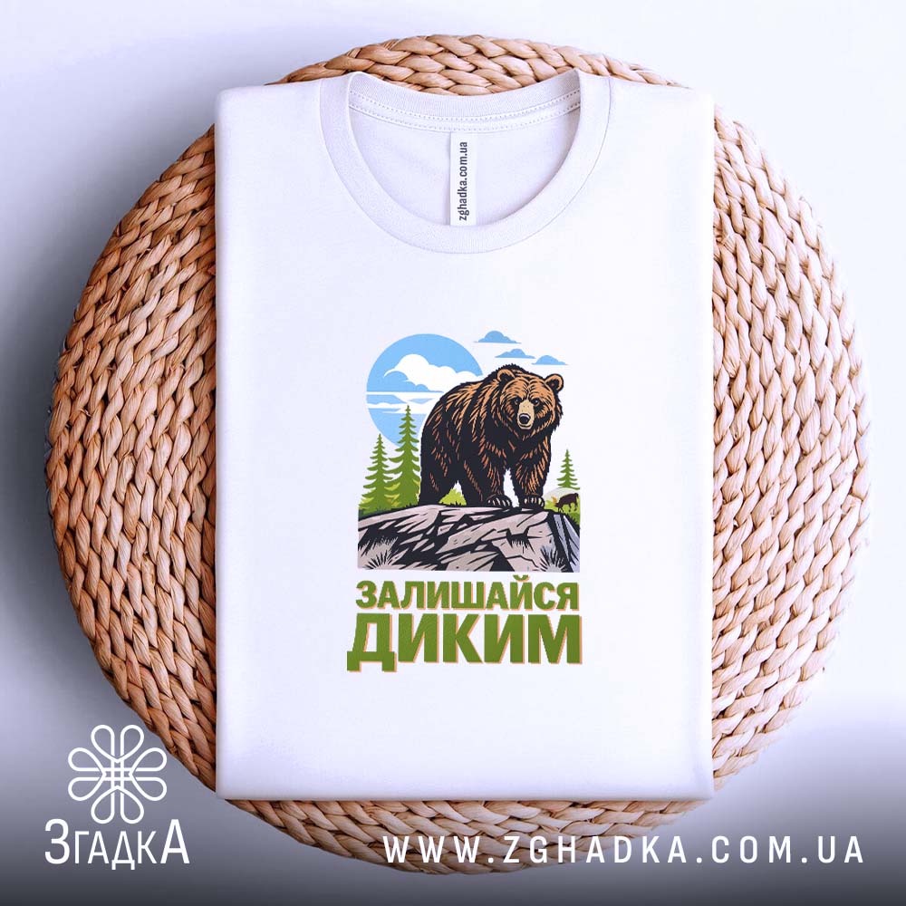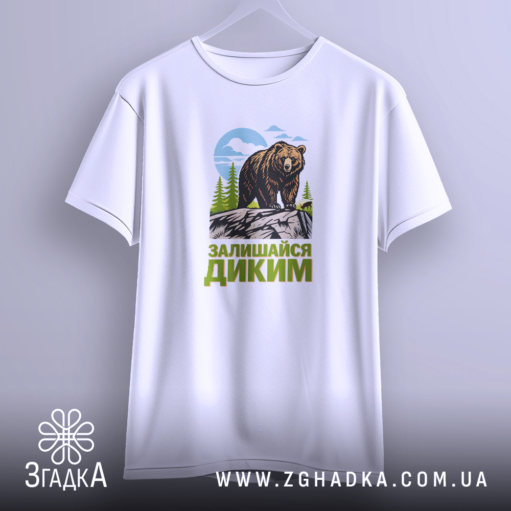 Футболка залишайся диким ведмежий принт