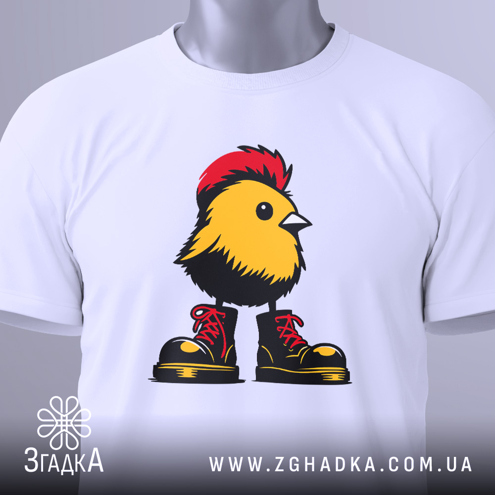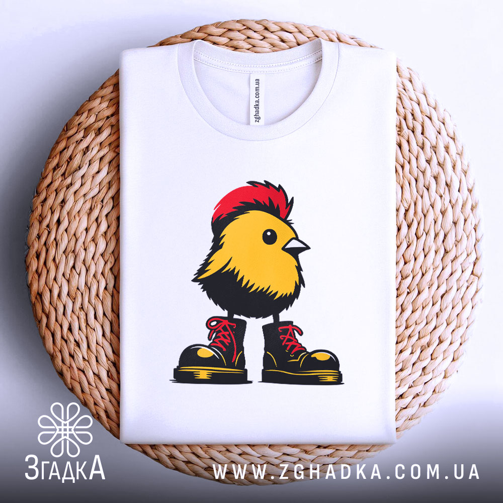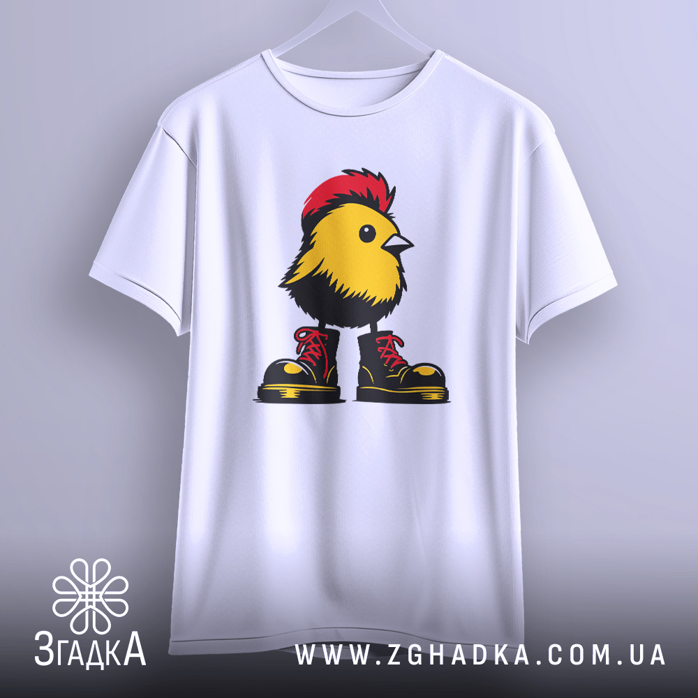 Футболка Жовта пташка – стильний вибір для кожного дня. Яскравий принт та комфортний матеріал роблять її ідеальною для будь-якої нагоди.
