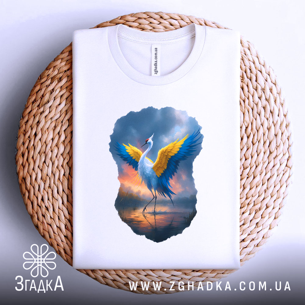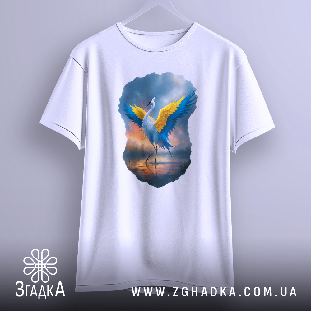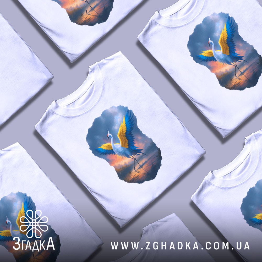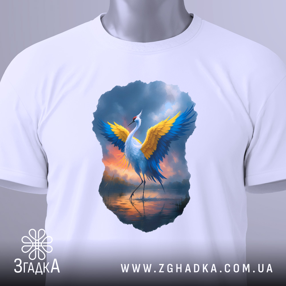 Ця футболка виготовлена з високоякісних матеріалів, що забезпечують комфорт і стиль. Принт журавля не лише естетичний, а й символізує надію та відродження, що робить її ідеальним вибором для кожного українця.