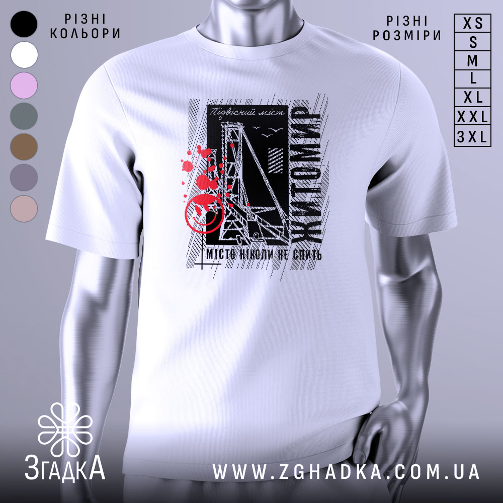 На принті зображено символи Житомира, що викликають гордість та емоції. Ця футболка стане чудовим доповненням до вашого гардеробу. Замовляйте зараз!