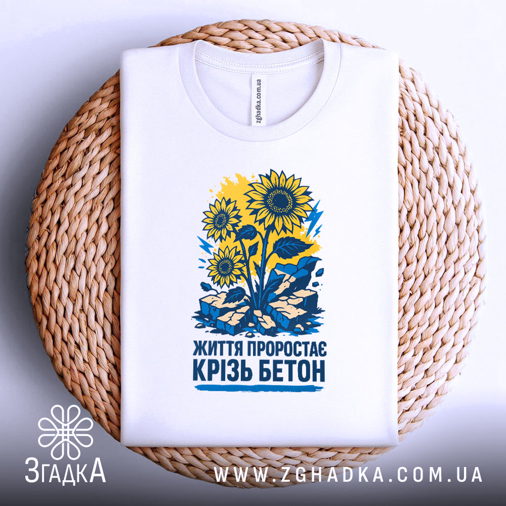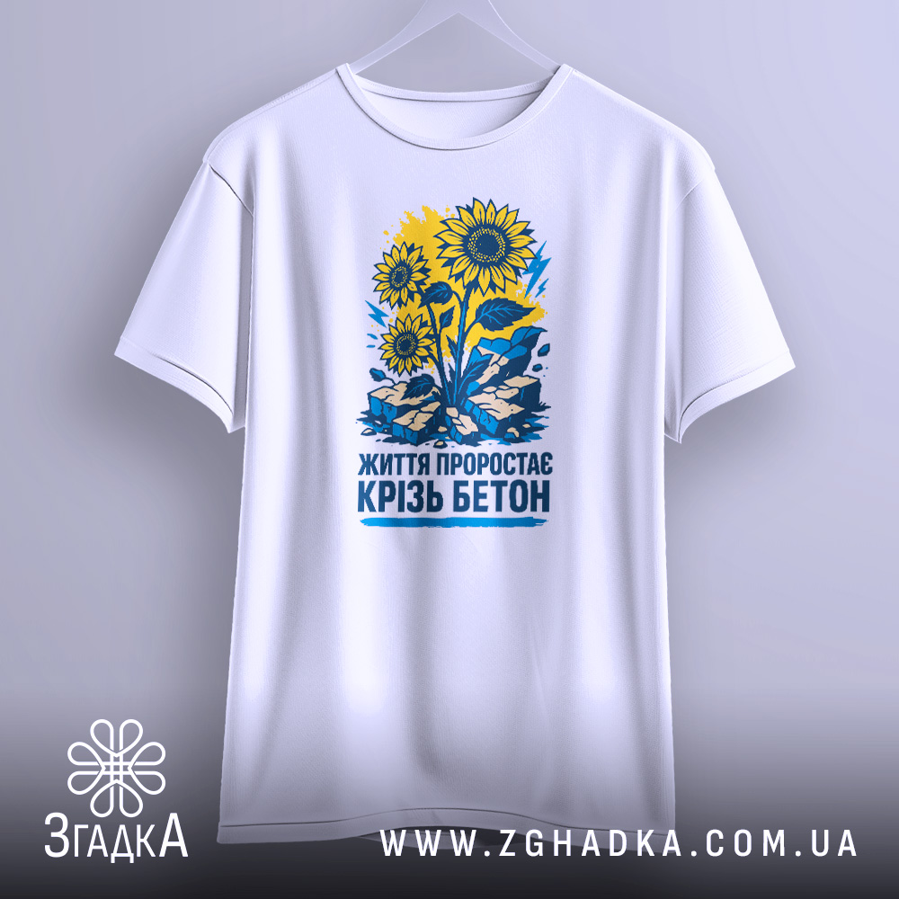 Футболка «Життя проростає крізь бетон» — це натхнення та сила духу, втілені у принті. Символ незламності українців, які навіть у найважчі часи знаходять шлях до світла.