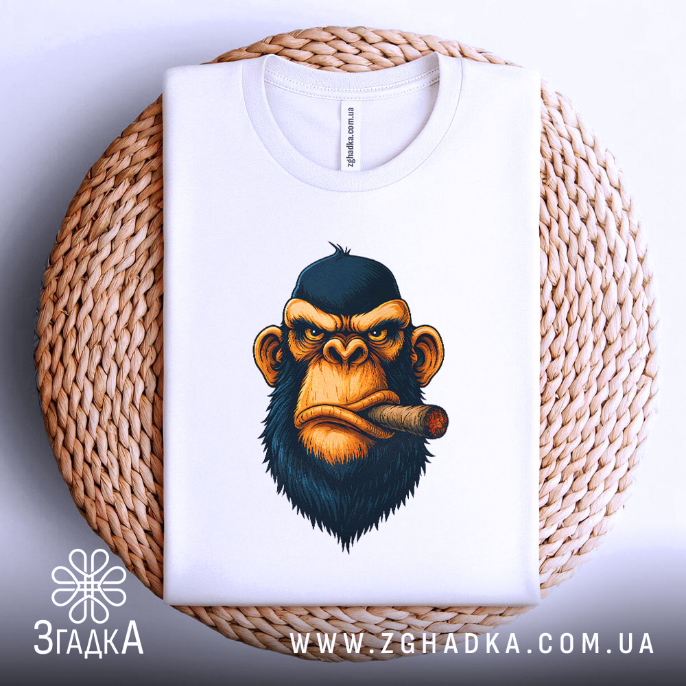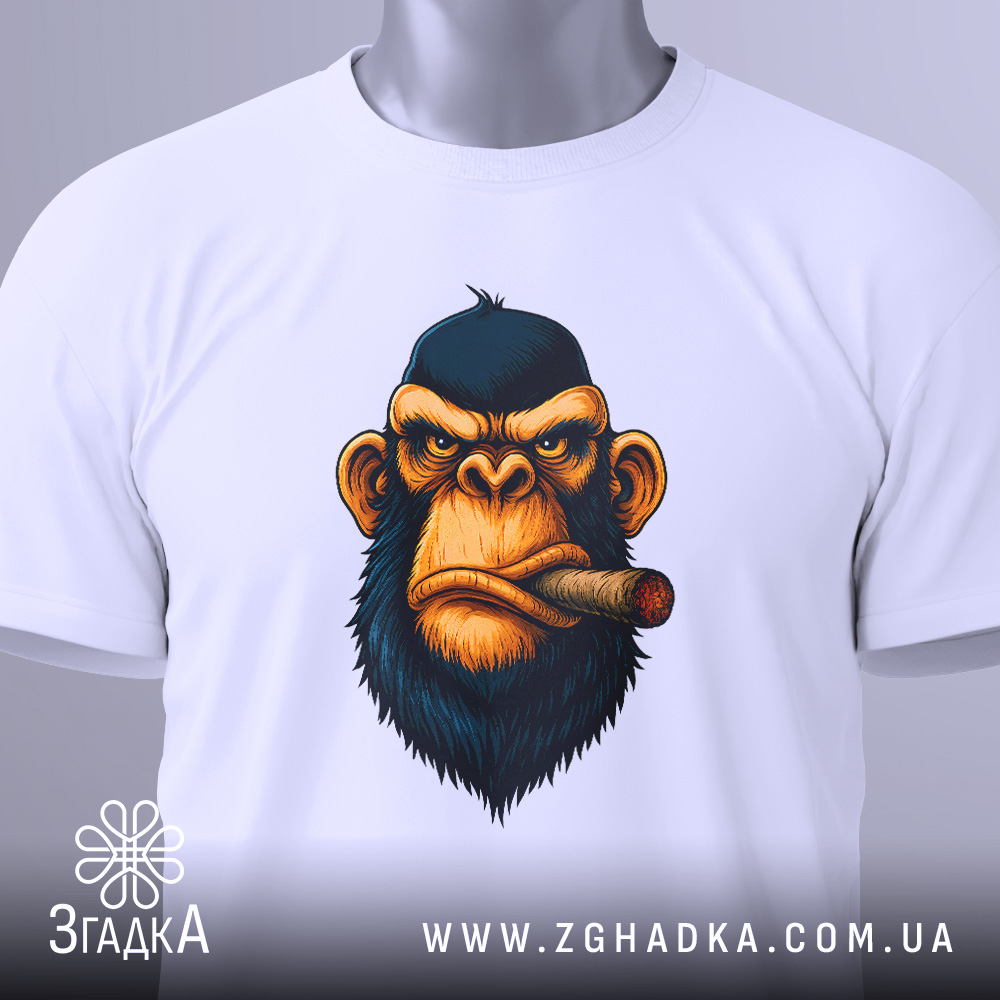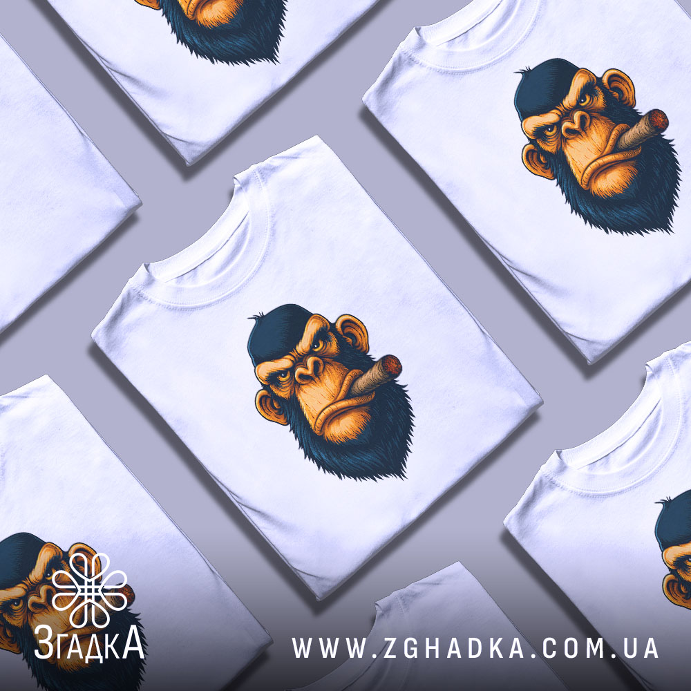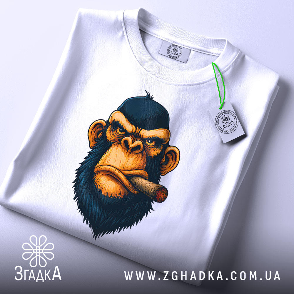 На принті зображена зла мавпа, що викликає емоції та привертає увагу. Цей стильний дизайн підходить для тих, хто любить виділятися. Замовляйте зараз!