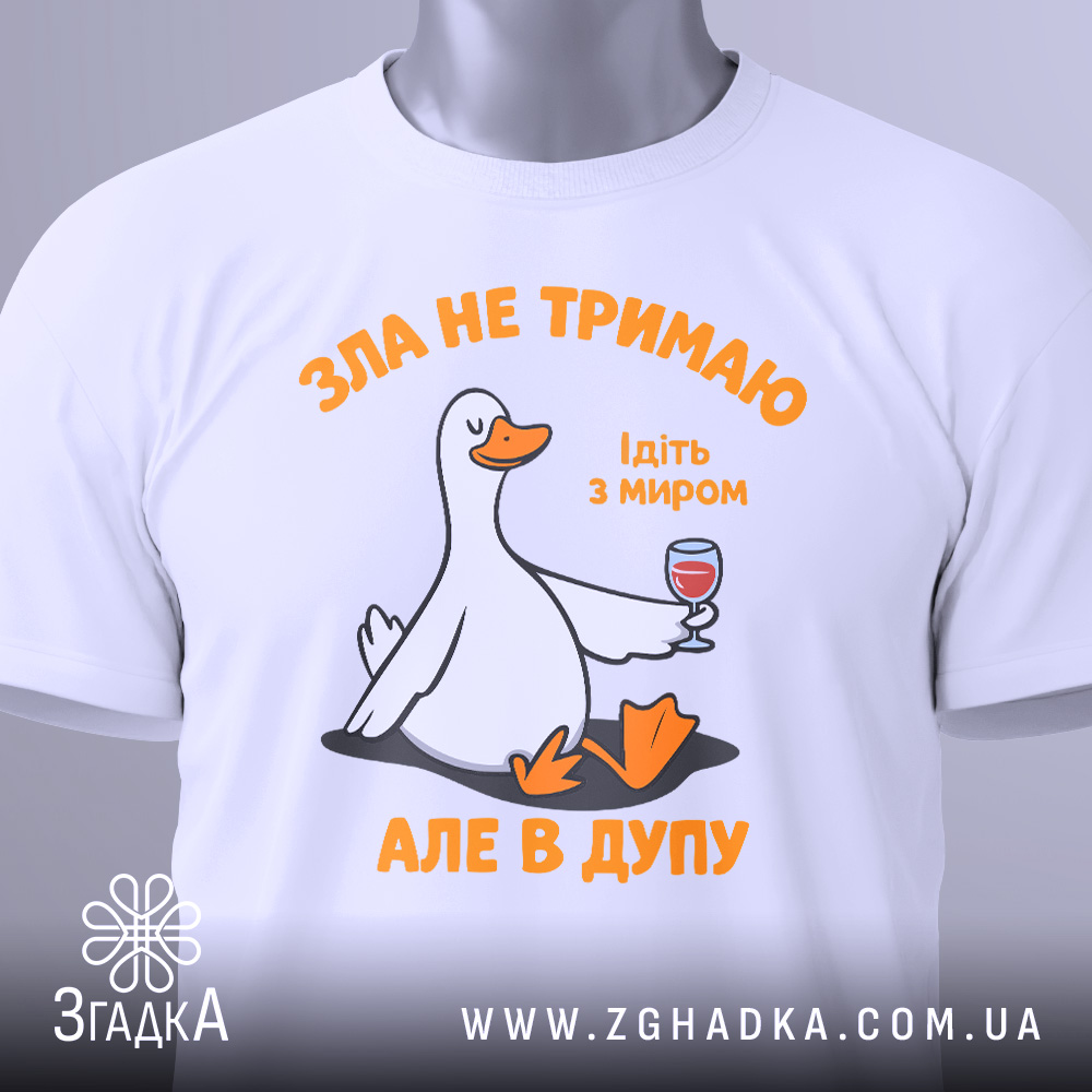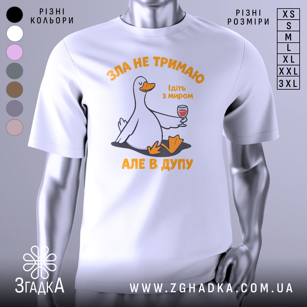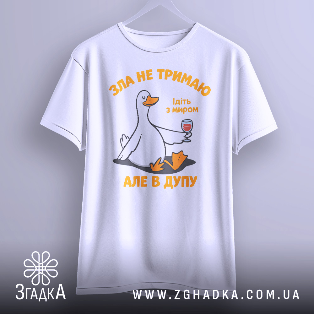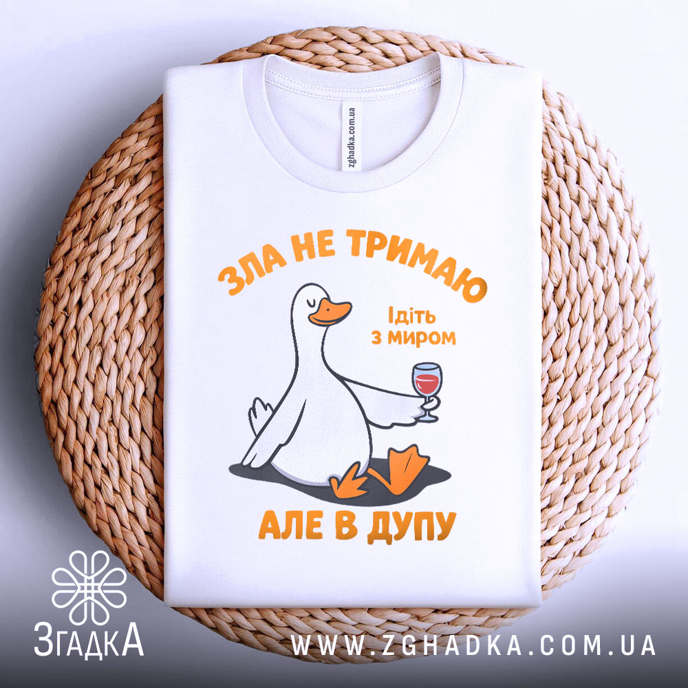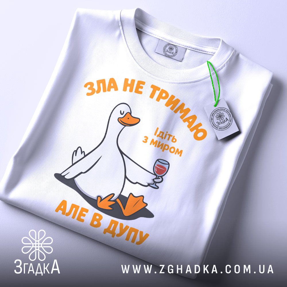 Футболка зла не тримаю – це стильний вибір для тих, хто цінує позитив. Якісний матеріал та унікальний принт роблять її ідеальною для будь-якої нагоди.