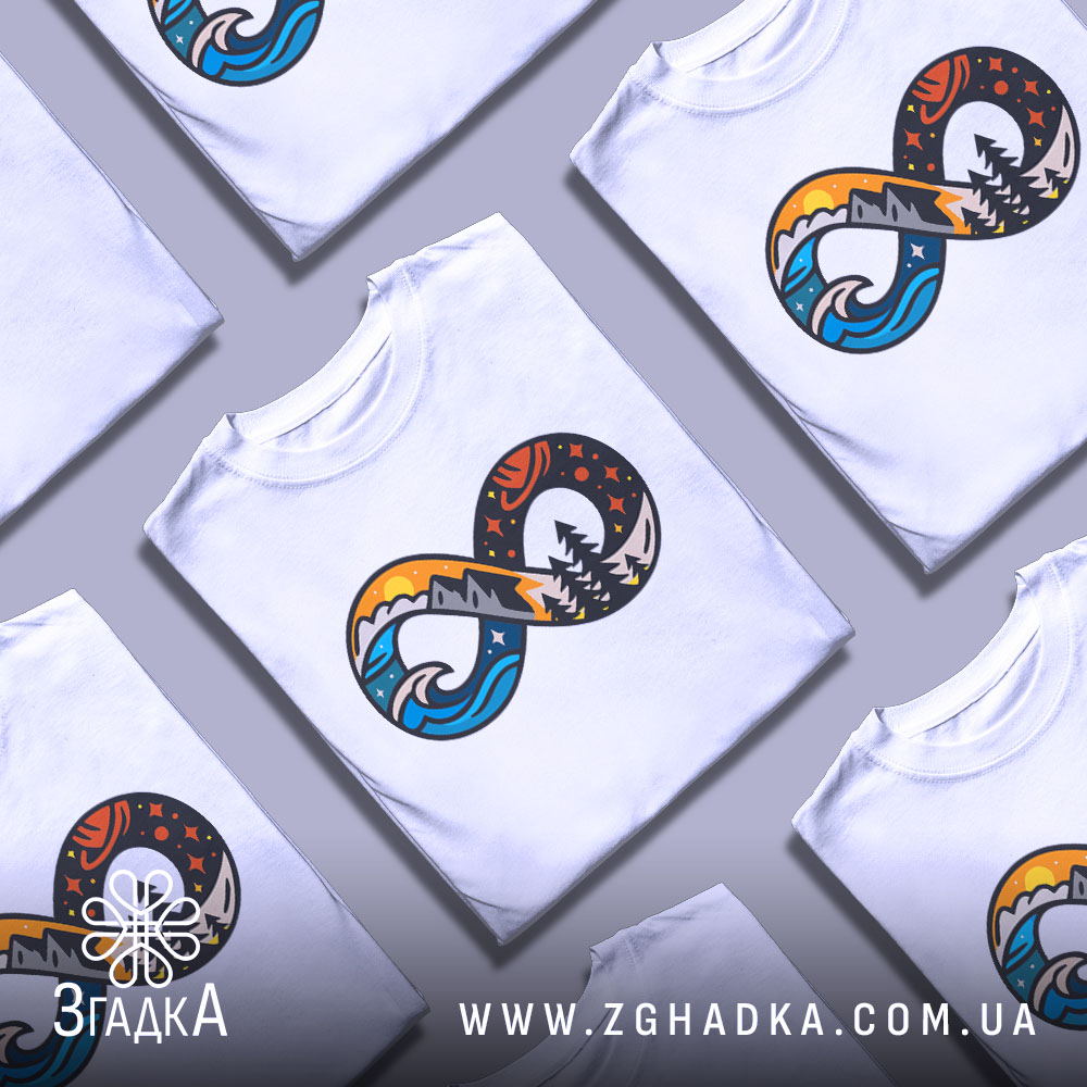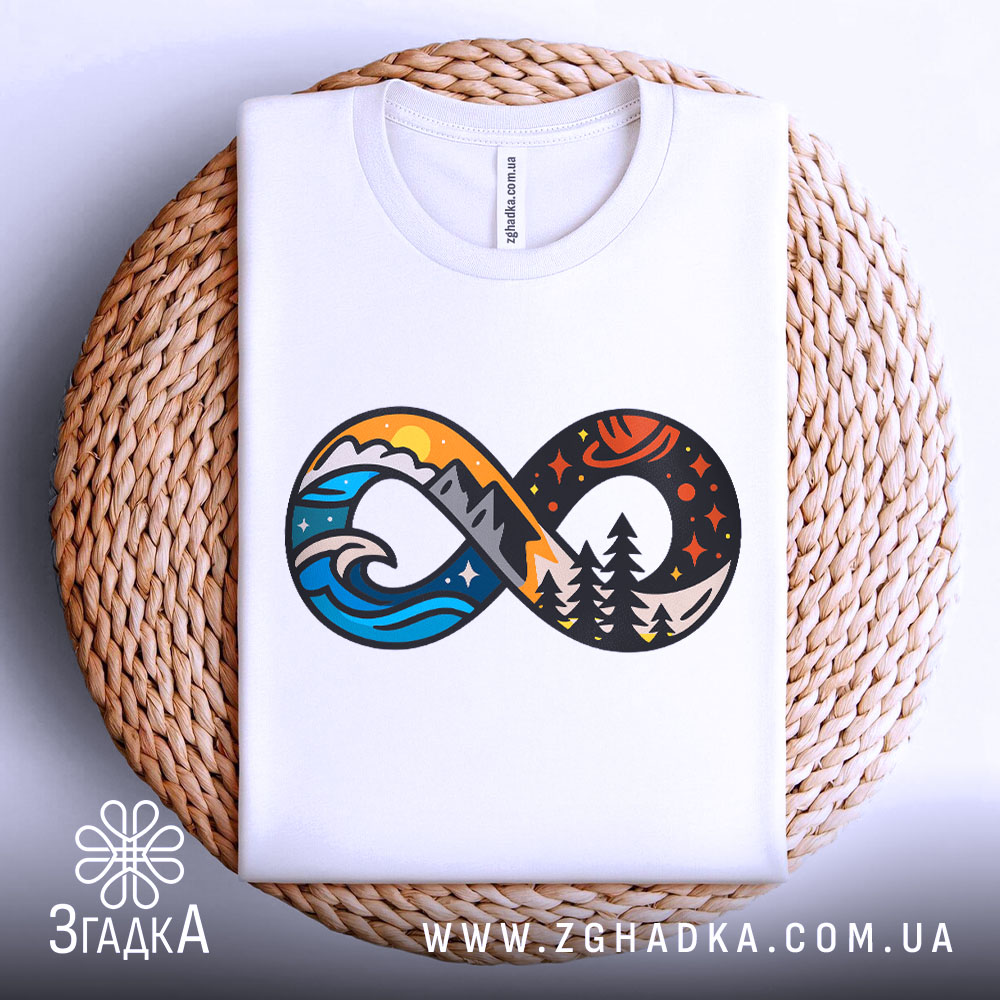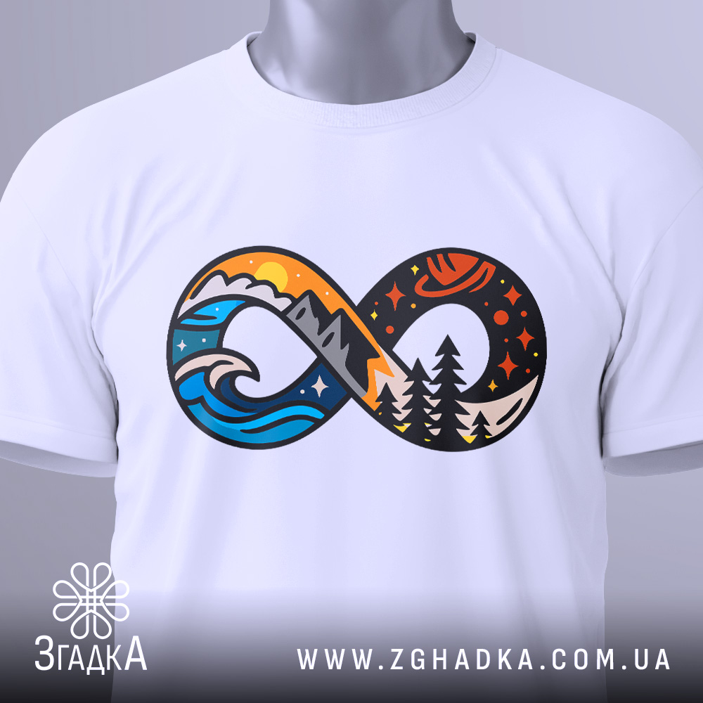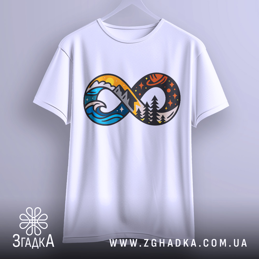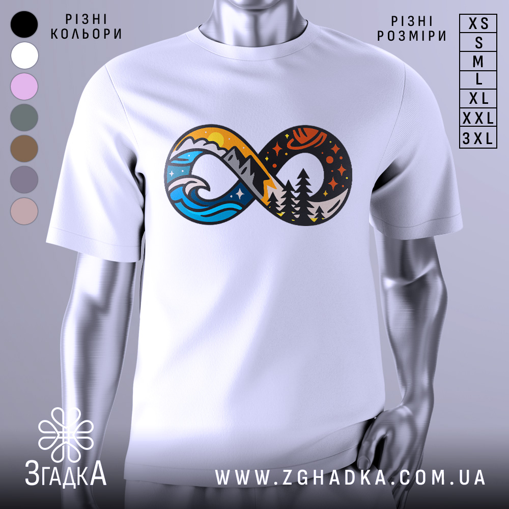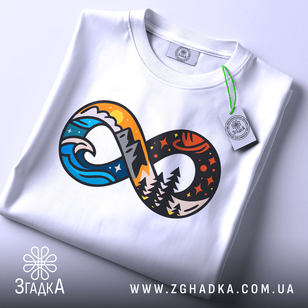 Футболка знак нескінченності – стильний та комфортний вибір для кожного. Високоякісні матеріали та унікальний дизайн роблять її ідеальною для повсякденного носіння.