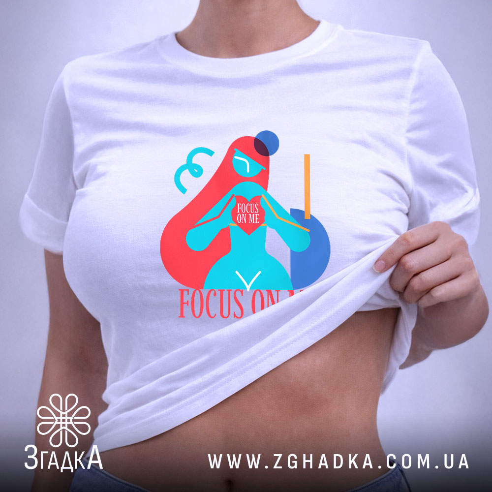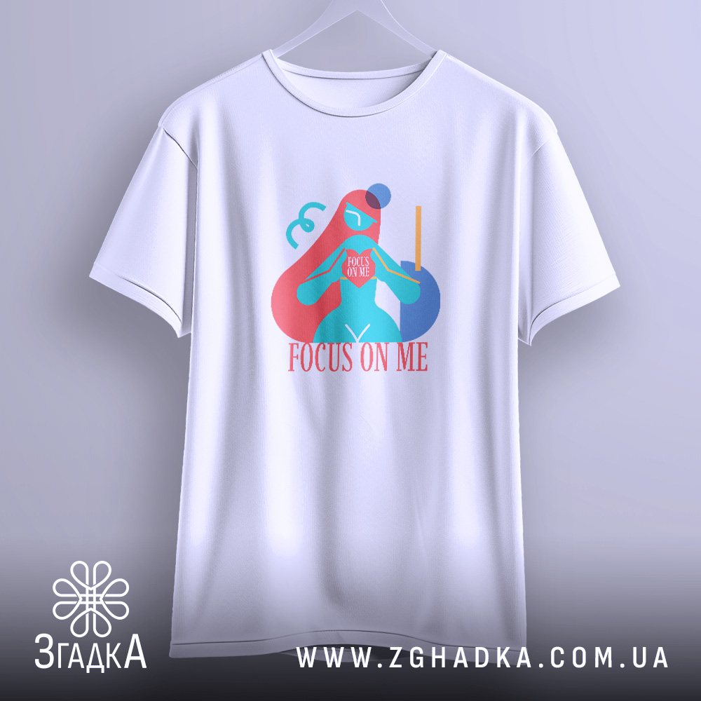 Футболка зосередься на мені арт принт – це стильний і комфортний вибір для будь-якого випадку.