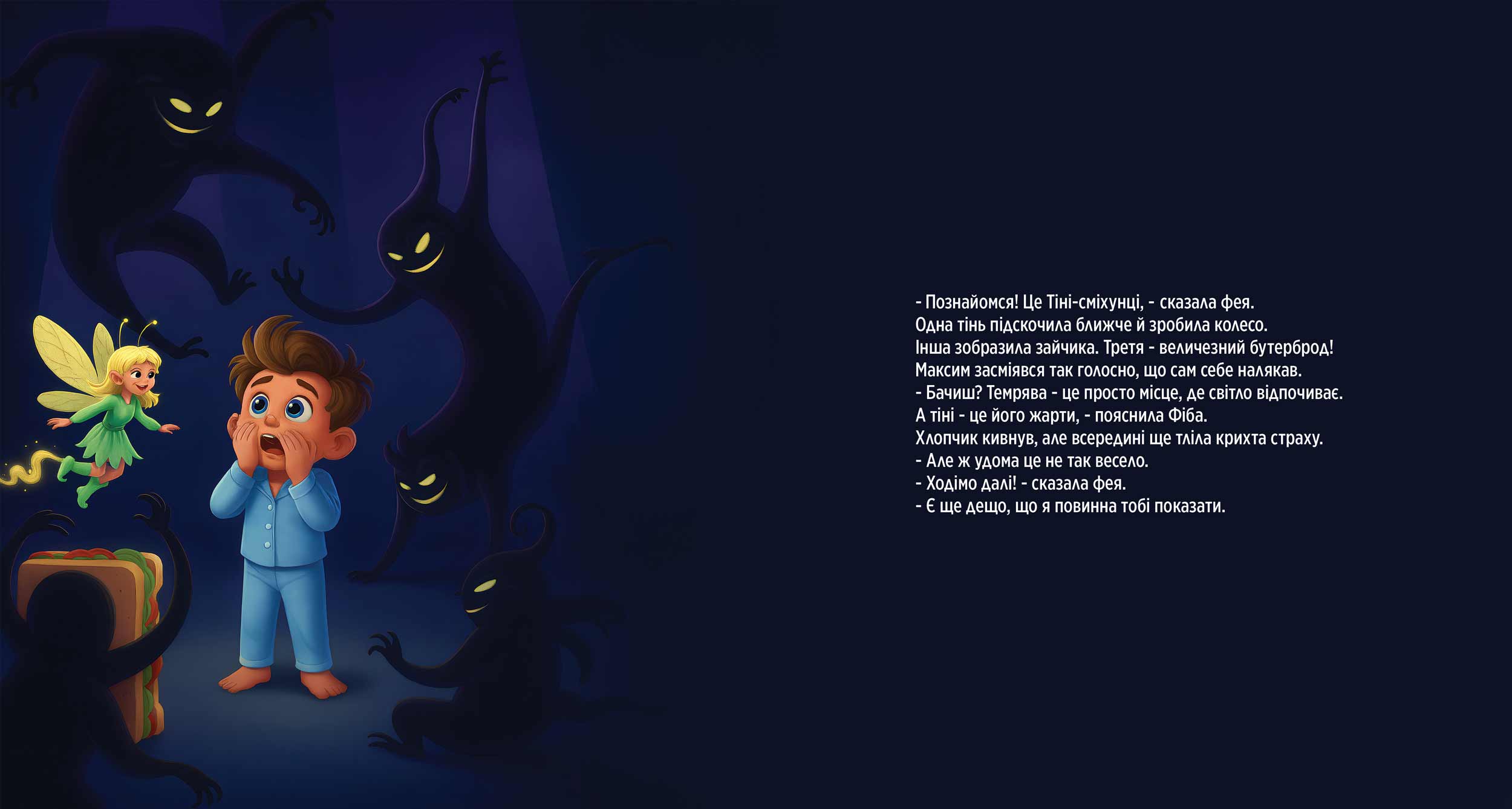 Так, сюжет побудований у формі м’якої когнітивно-терапевтичної казки, яка пояснює темряву через гру, магію та підтримку феї.