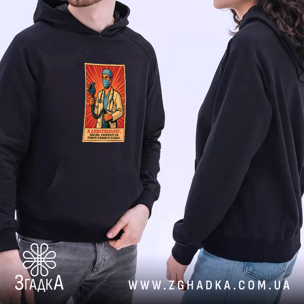 На худі зображено унікальний принт, що символізує професію анестезіолога. Цей стильний елемент одягу не лише підкреслить вашу ідентичність, але й стане чудовим подарунком для колег. Замовте вже зараз, щоб відчути комфорт та стиль!