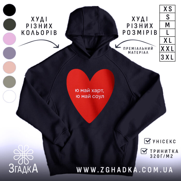 Худі ю май харт — це не просто одяг, а стильне вираження вашої індивідуальності. Замовляйте зараз та насолоджуйтесь комфортом і теплом.