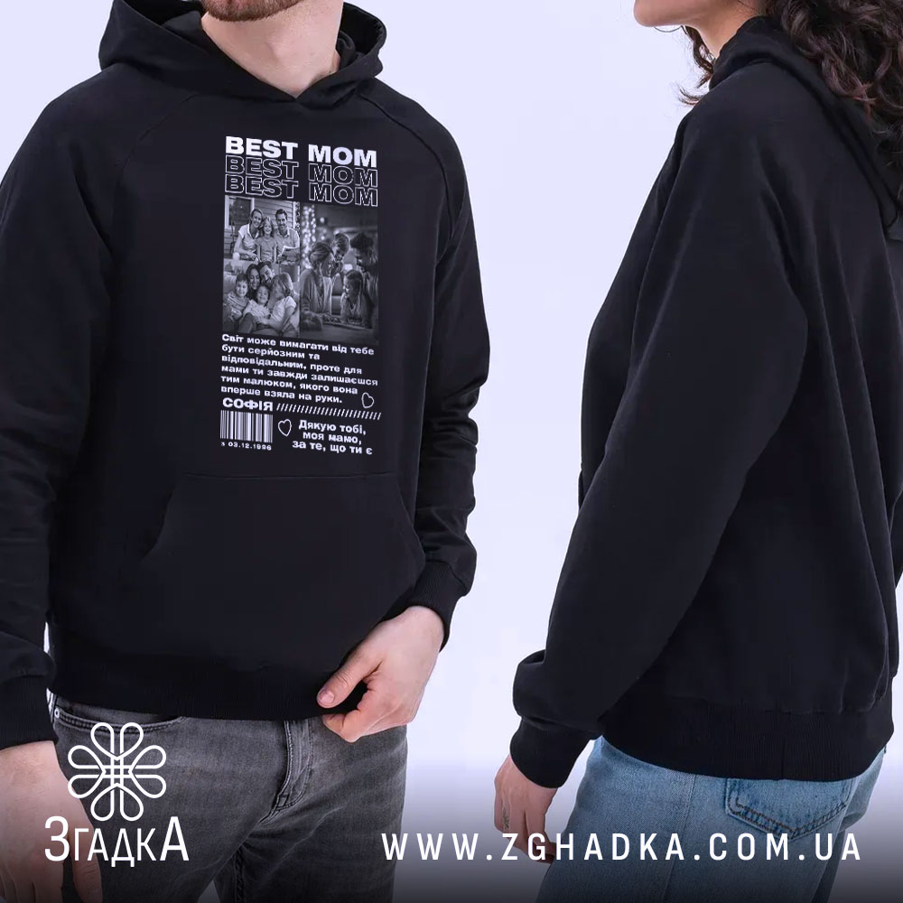 Стильне худі з унікальним принтом для мами. Тепло, комфорт та емоції в одному виробі.
