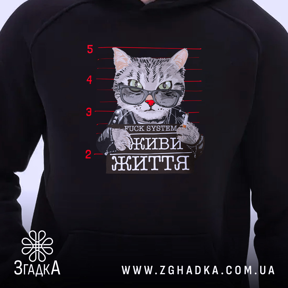 Худі живи життя без системи – це не лише одяг, а стиль життя, який підкреслює вашу індивідуальність.