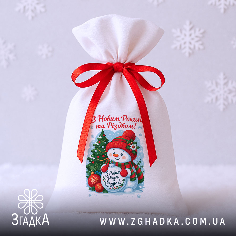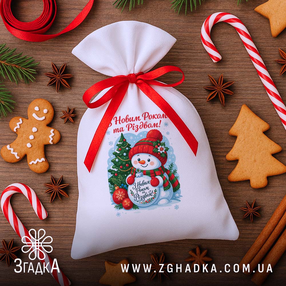 Мішечок дитячий різдвяний — це чарівна деталь, яка надає подарунку особливого настрою. Святковий принт із милим сніговичком, ялинкою та новорічними елементами створює тепло й затишок, а можливість персоналізації робить презент унікальним. Такий мішечок не лише прикрашає подарунок, а й перетворює вручення на маленьке диво, наповнене сюрпризами та емоціями.