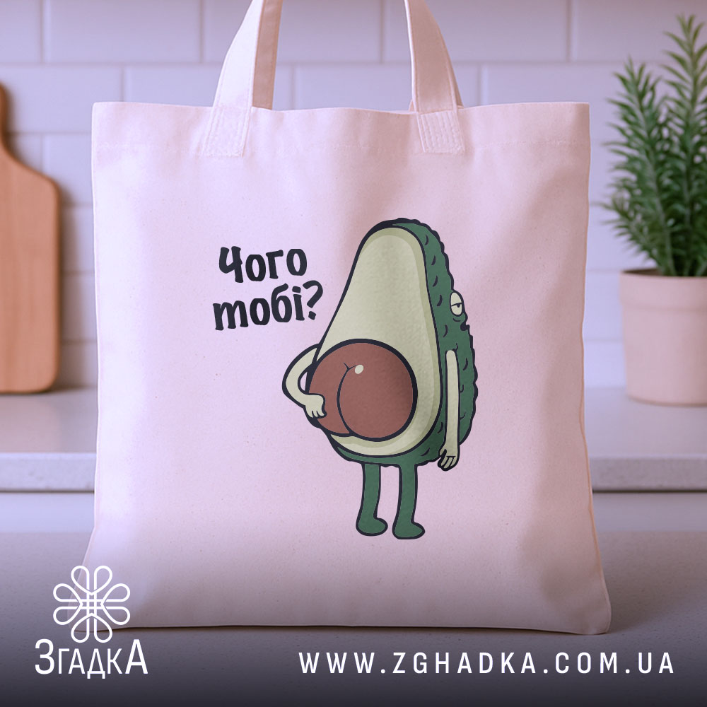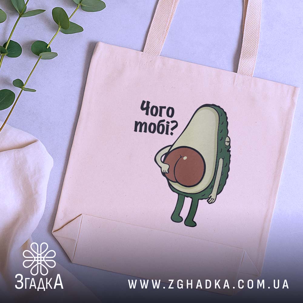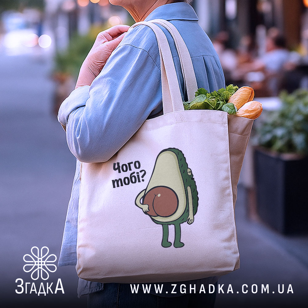 На шопері зображено авокадо, що символізує свіжість та здоровий спосіб життя. Цей принт не лише радує око, але й закликає до дії — оформіть замовлення та зробіть свій внесок у екологію!