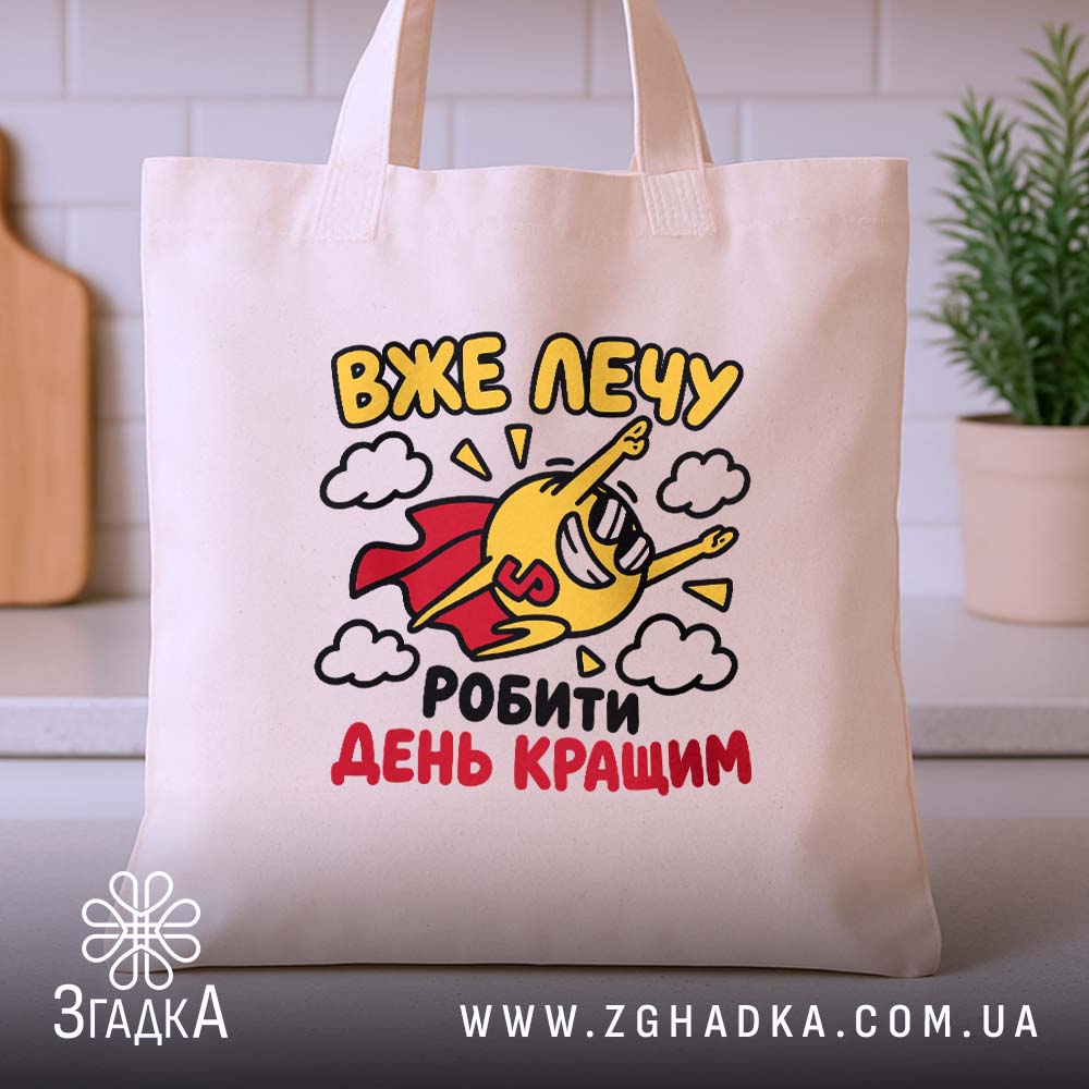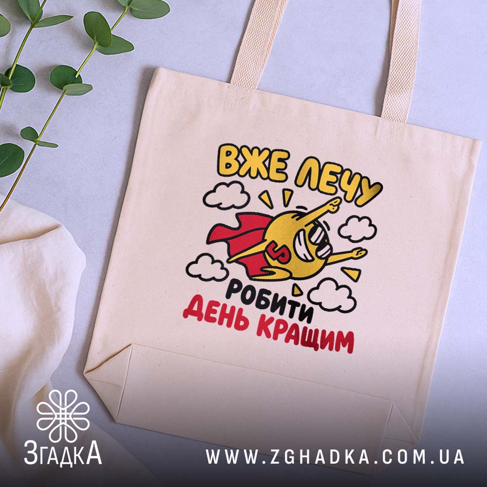 Шопер ‘Лечу робити день кращим’ – це не просто аксесуар, а ваш настрій на кожен день.