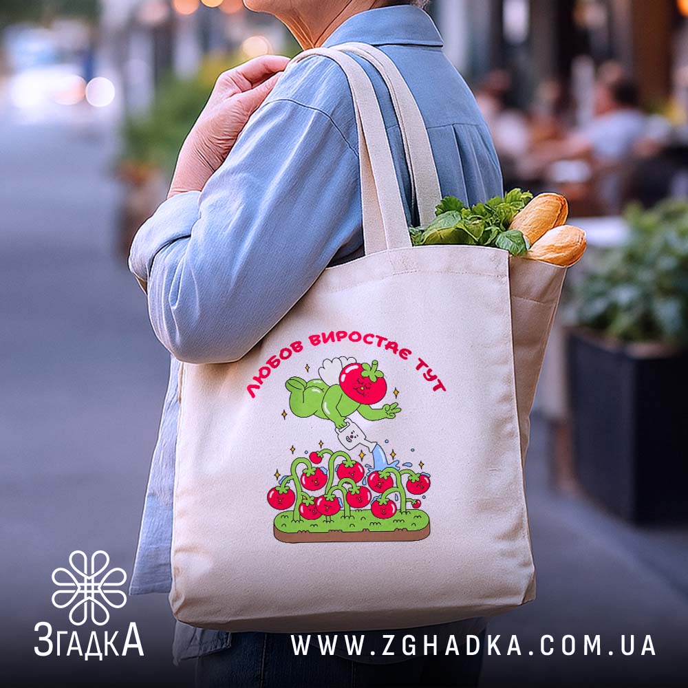 Шопер Любов до томатів – це стильний і практичний аксесуар, який стане вашим незамінним помічником у повсякденному житті.