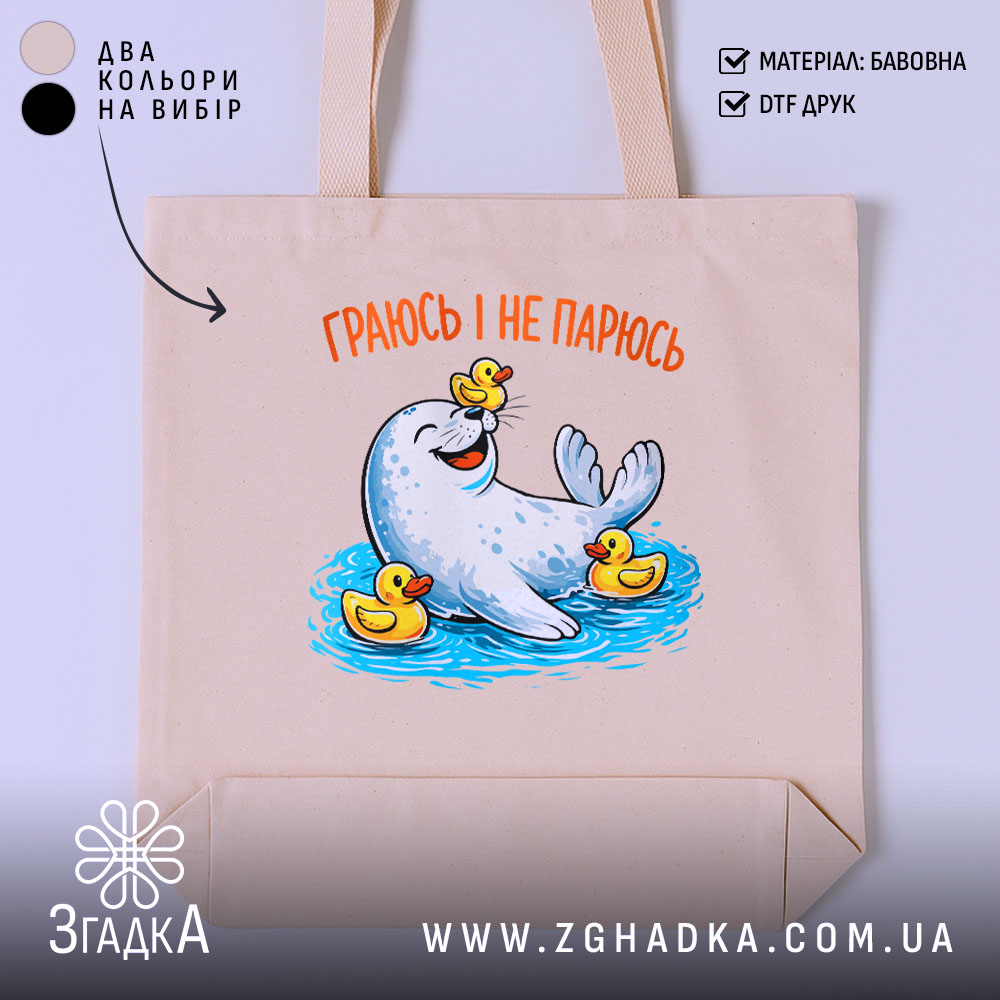 Шопер морський котик і качечки – це стильний, практичний і екологічний вибір для кожного дня.