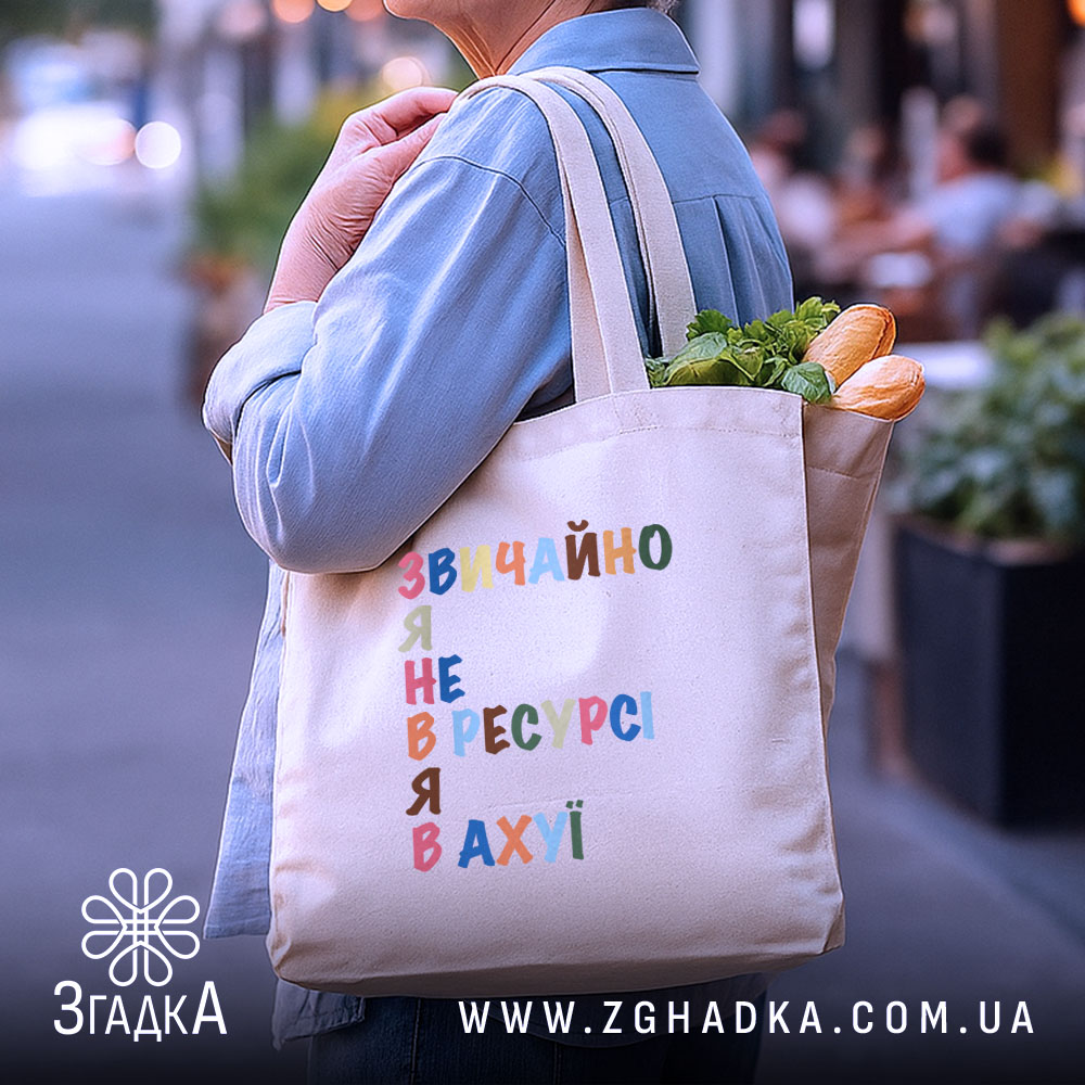 Шопер не в ресурсі – це стильний і екологічний вибір для щоденних справ. Витримує до 15 кг і виготовляється з якісних матеріалів.