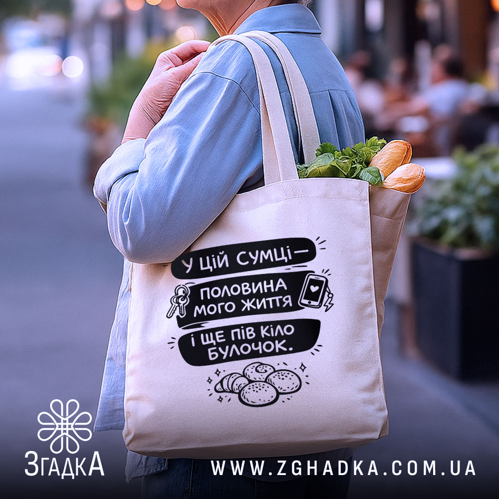 На шопері зображено натхненний принт, який викликає позитивні емоції та підкреслює вашу індивідуальність. Замовте його зараз, щоб додати яскравості у ваше повсякдення!