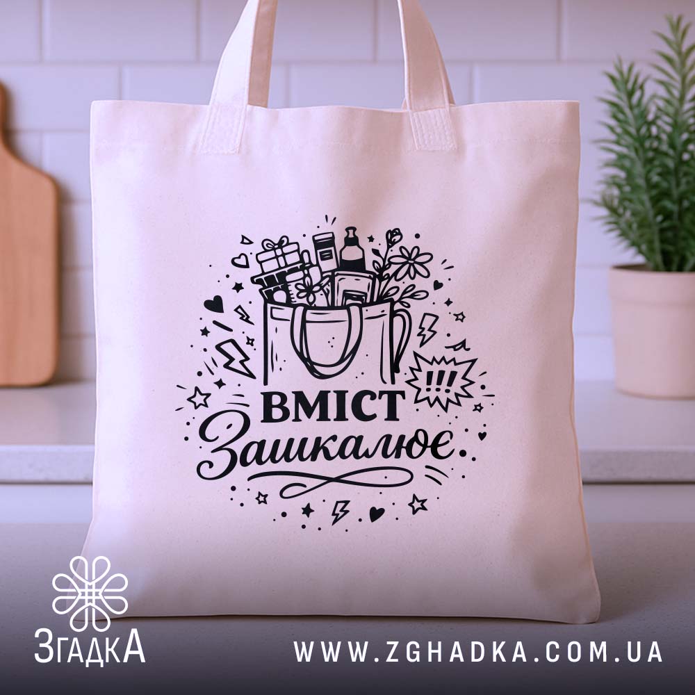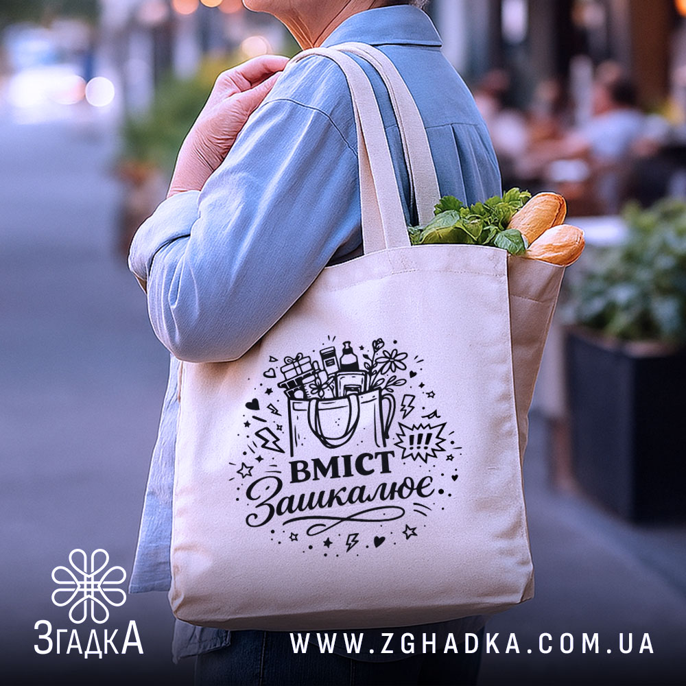 Шопер вміст зашкалює – стильний та екологічний вибір. Ідеальний для щоденних покупок та подорожей.
