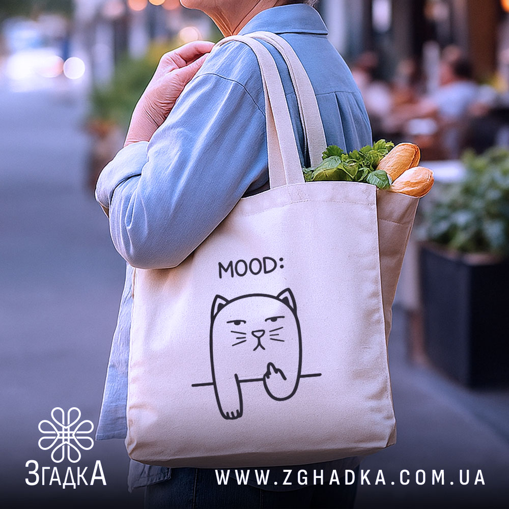 Шопер жартівливий mood котик – це не лише стильний аксесуар, але й практичний помічник у повсякденному житті. Обирайте екологічність та комфорт, замовляйте вже сьогодні!