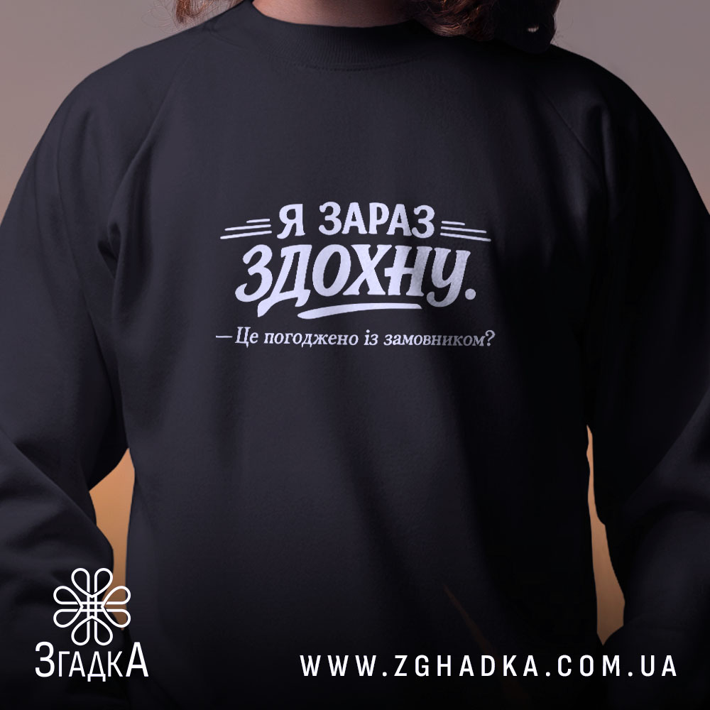 Світшот ‘я зараз здохну про дедлайни’ – це стильний та комфортний вибір для будь-якої ситуації.